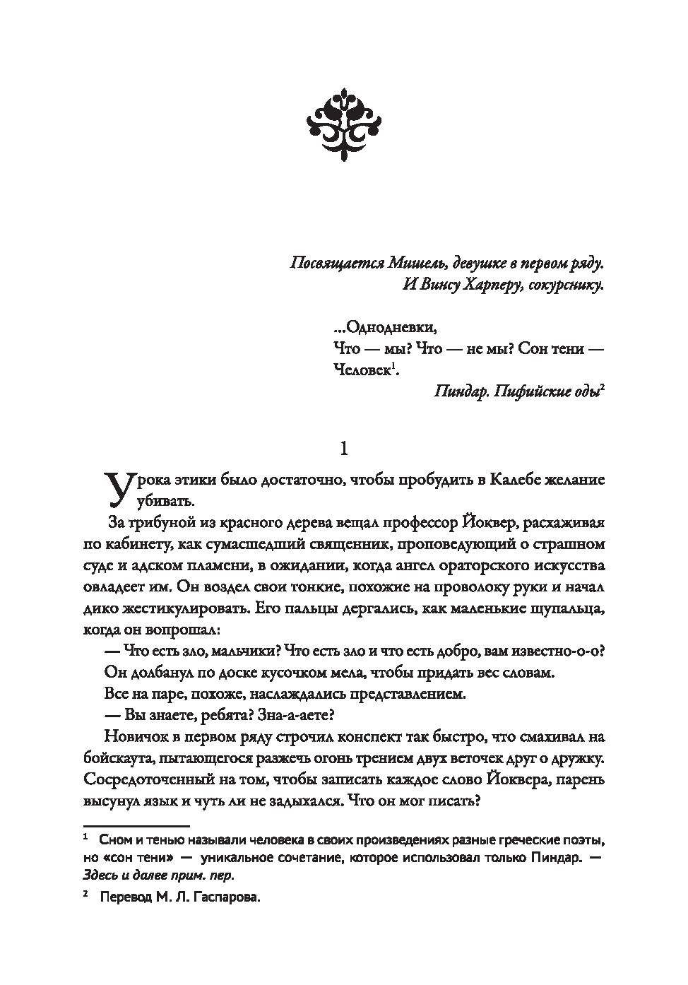 Начало нового семестра выдалось для Калеба не слишком удачным. Трудности в учебе, депрессия, беспробудное пьянство... И в довершение всего жестокая смерть неизвестной студентки в его комнате. Одержимый непреодолимым желанием раскрыть это преступление, Калеб начинает собственное расследование, которое заведет его куда дальше, чем могло привидеться в самых страшных ночных кошмарах. Ведь в причудливых залах древнего университета проснулось настоящее Зло. И кровоточащие стигматы на руках Калеба неумолимо возвещают о его приближении.