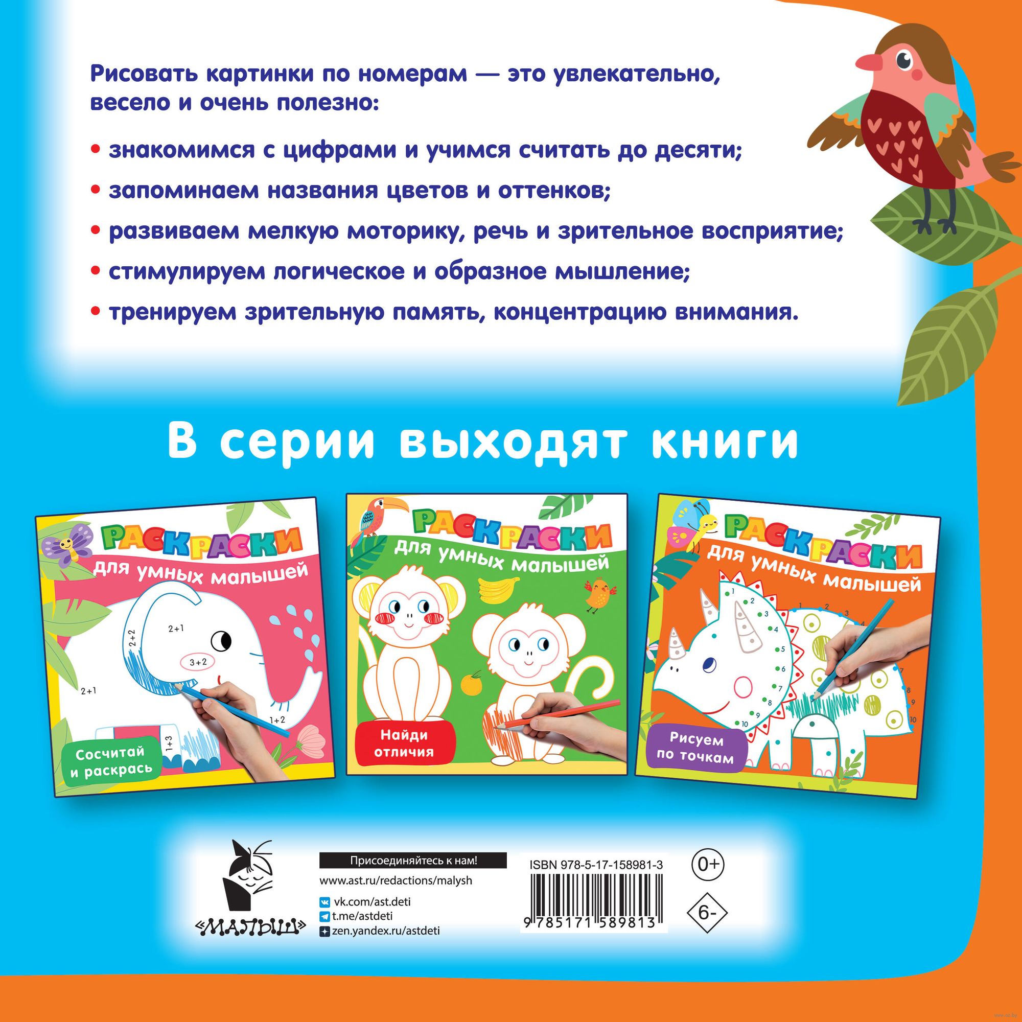 "Рисуем по номерам" – замечательная развивающая раскраска. Любознательным малышам обязательно понравится красочная коллекция головоломок и зашифрованных картинок. Каждый элемент на странице пронумерован и соответствует определённому цвету – это позволяет раскрашивать детали рисунка, изучать и запоминать цвета радуги и цифры от 1 до 10. Предложите ребёнку рисовать по номерам и решать логические задачки – такие интеллектуальные занятия помогают выучить счёт и запомнить графическое написание цифр, расширяют кругозор и словарный запас, формируют графические навыки, развивают мышление, память, внимание, наблюдательность, смекалку и творческие способности. На каждой странице забавные нарисованные герои и интересные задания – ребёнок сможет заниматься самостоятельно и с удовольствием.