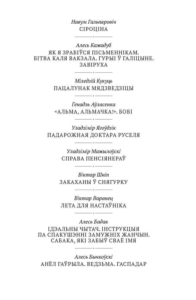 Новая кніга з серыі "Сучасная беларуская літаратура" працягвае знаёміць з жанрам апавядання. Кожны з прыведзеных твораў – індывідуальны мастацкі позірк на прыроду жыцця, спроба спасцігнуць сутнасць чалавека.