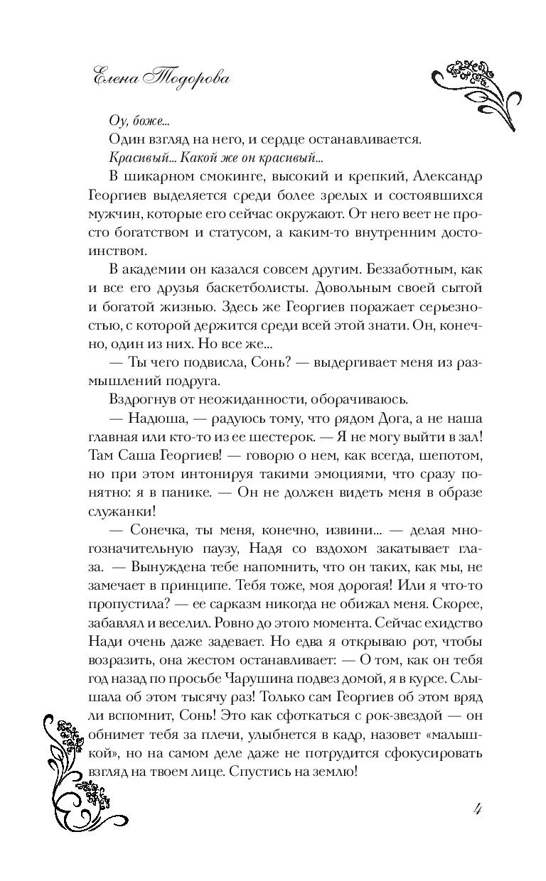 Влюбляется Сонечка в лучшего из лучших – единственного сына прокурора города. Александр Георгиев – сильный, статный, красивый, но угрюмый принц, который не стремится к серьезным отношениям. Тем более с такими, как она.