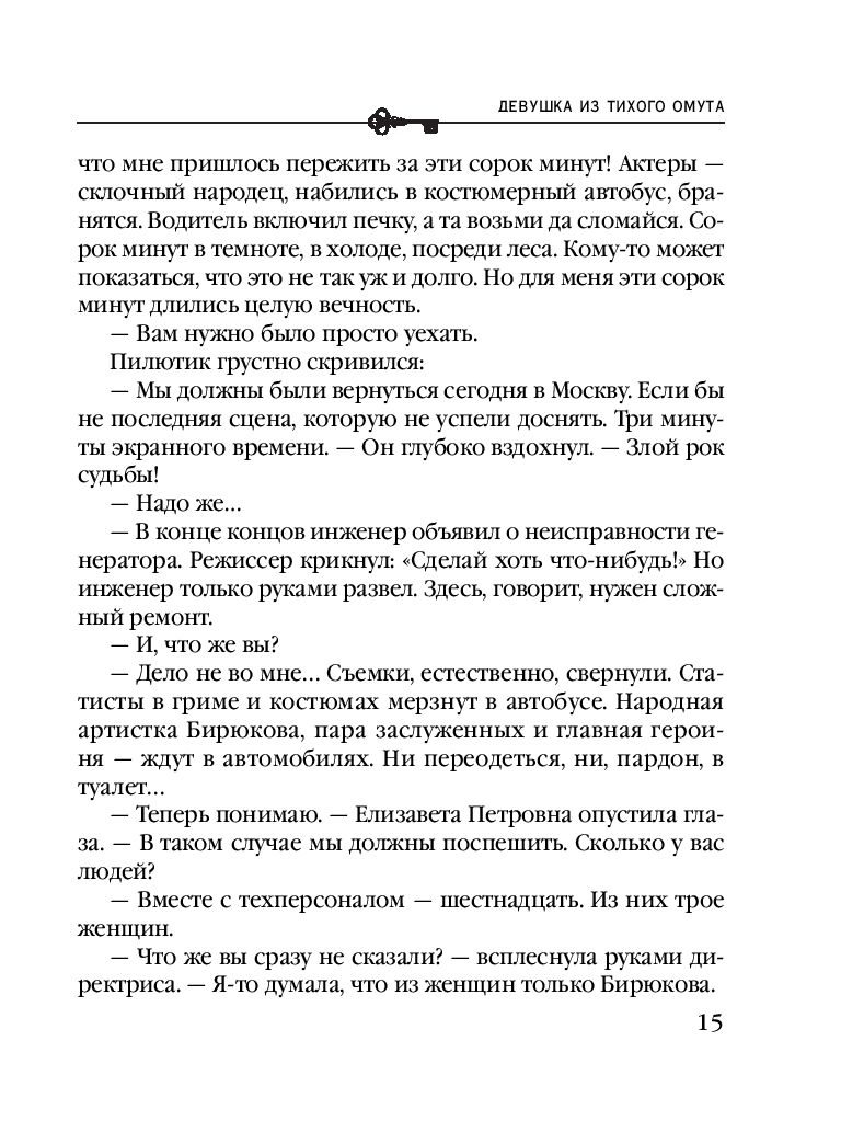 Старинная легенда гласила, что много веков назад в нем утонула девушка-воин Варвара, а ведь именно ее роль играет Лионелла в новом фильме! Дурные предчувствия оправдались – работа была сорвана, и актеров разместили в пансионате на берегу озера.
