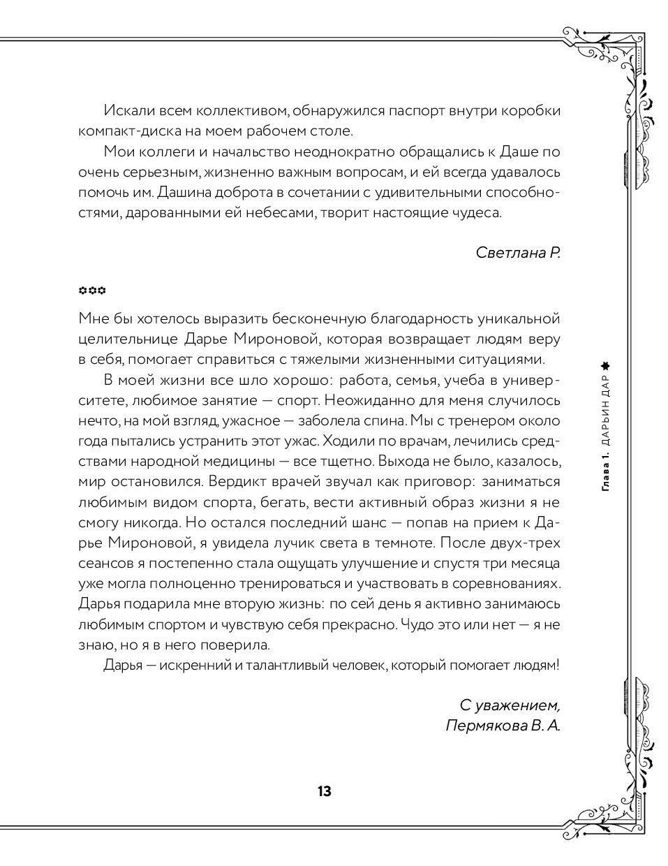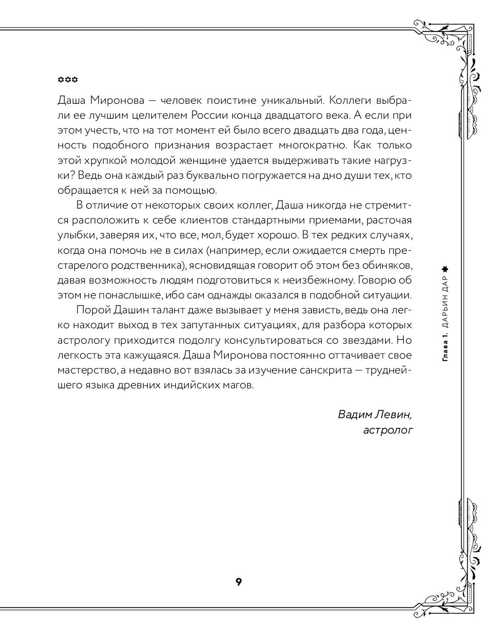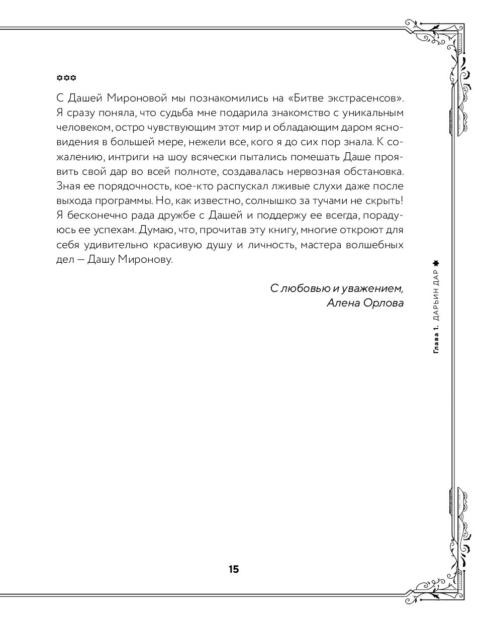 Книга Дарьи Мироновой – известного парапсихолога, ясновидящей, финалистки "Битвы экстрассенсов", человека, обладающий абсолютной интуицией, о том, как можно позитивно влиять на свою жизнь, улучшая отношения с людьми и миром, исцеляя себя и осуществляя свои желания.