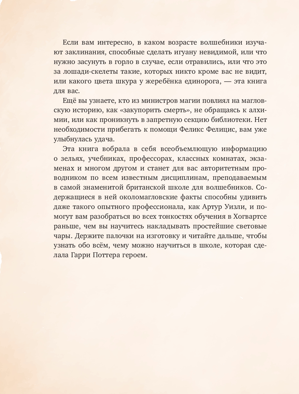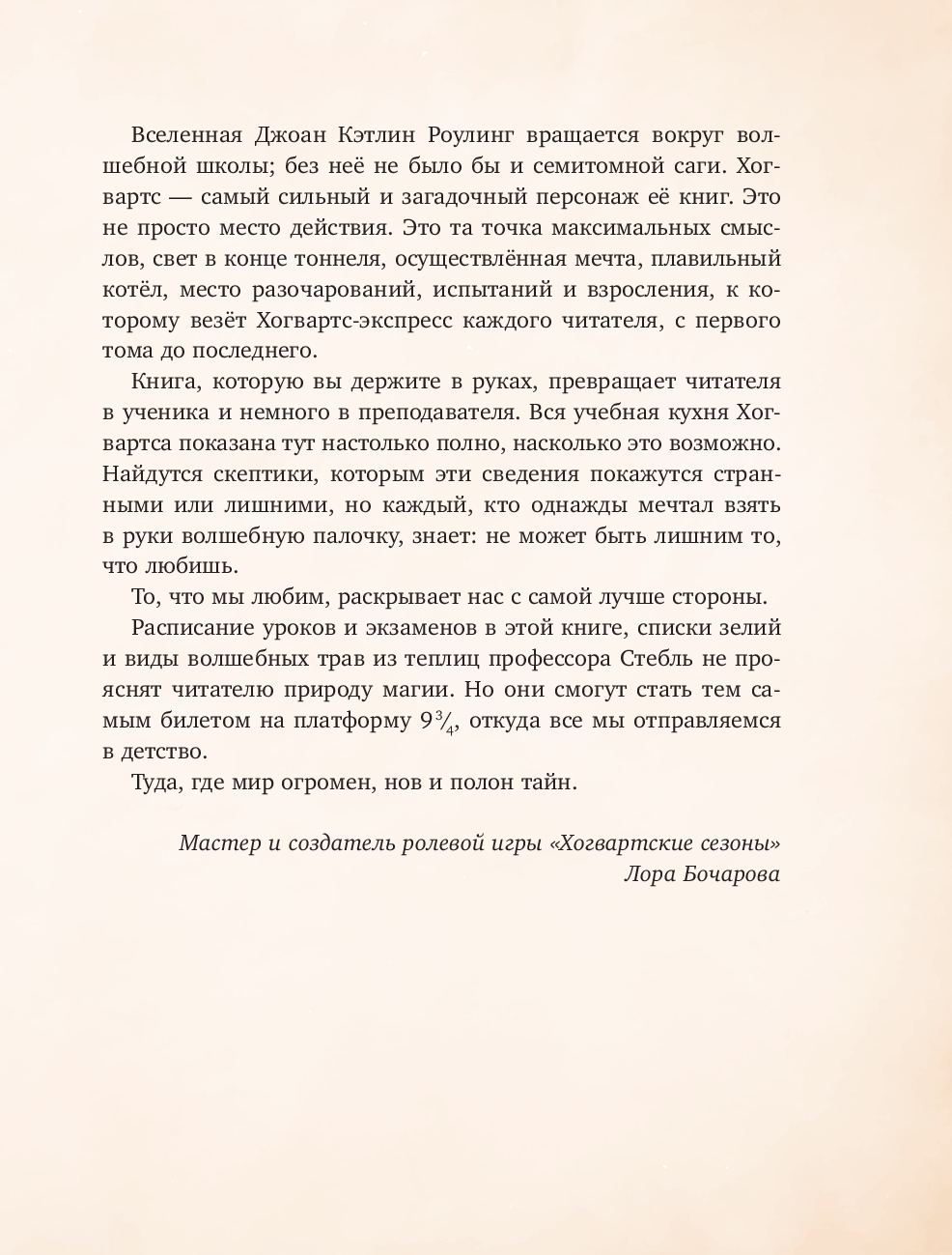 Дорогой друг, тебя ждёт множество невероятных открытий, волшебство на каждой странице. Хогвартс-экспресс отправляется с платформы 9 ¾ прямо сейчас!