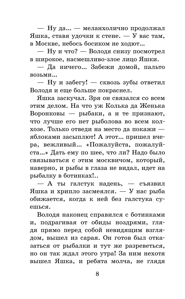 Ничего не предвещает беды ранним тихим утром, когда двое мальчишек – деревенский Яшка и приехавший из города Володя – собираются на рыбалку. Так начинается рассказ Ю. Казакова "Тихое утро". Яшка знает о рыбалке всё, но его приятель из Москвы совсем новичок в рыбной ловле: неопытный Володя только суетится и мешается под ногами. Мальчики и не догадываются, чем закончится их поход на пруд.