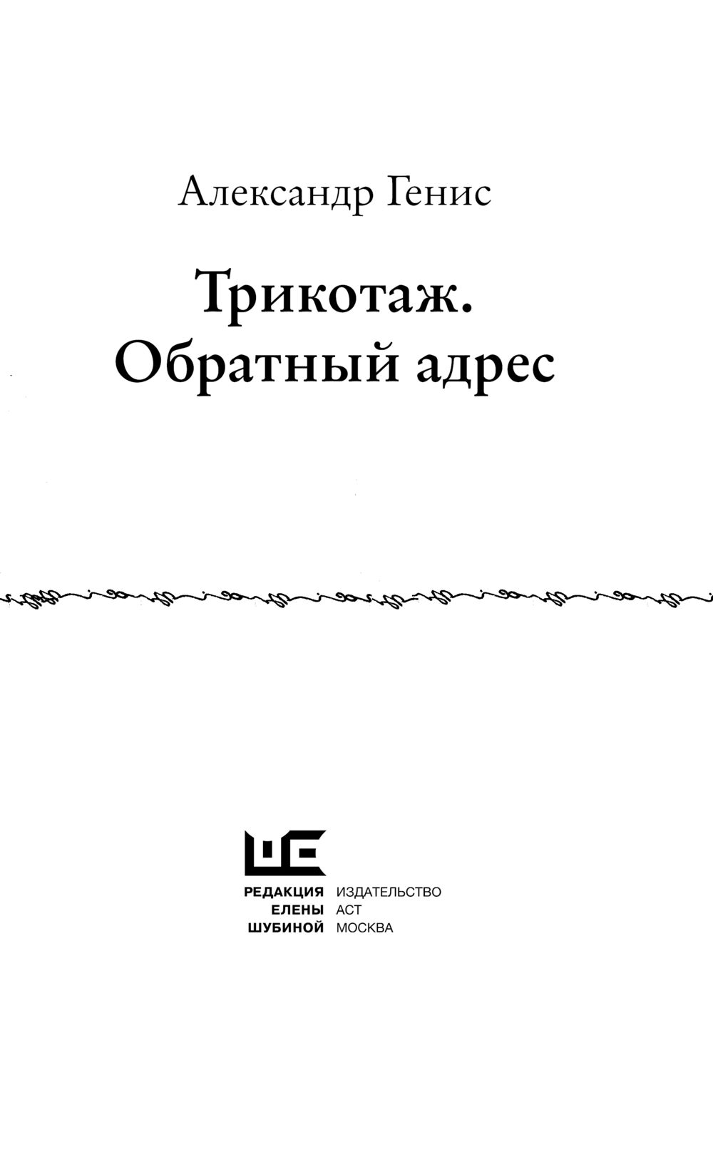Мемуарный том Александра Гениса сочетает под одним переплетом две очень разные книги.В обеих читатель встретит знакомых героев и материал, но тексты радикально различаются манерой. Если построенный вокруг жизни автора цикл рассказов "Трикотаж" – это плотная лирическая проза с теологическими нюансами, то "Обратный адрес" остается в честных рамках нон-фикшена и может служить ключом (вплоть до фотографий персонажей) к первой книге. Такой контрапункт остраняет традиционный мемуарный жанр и делает его новым и оригинальным.