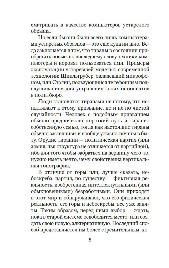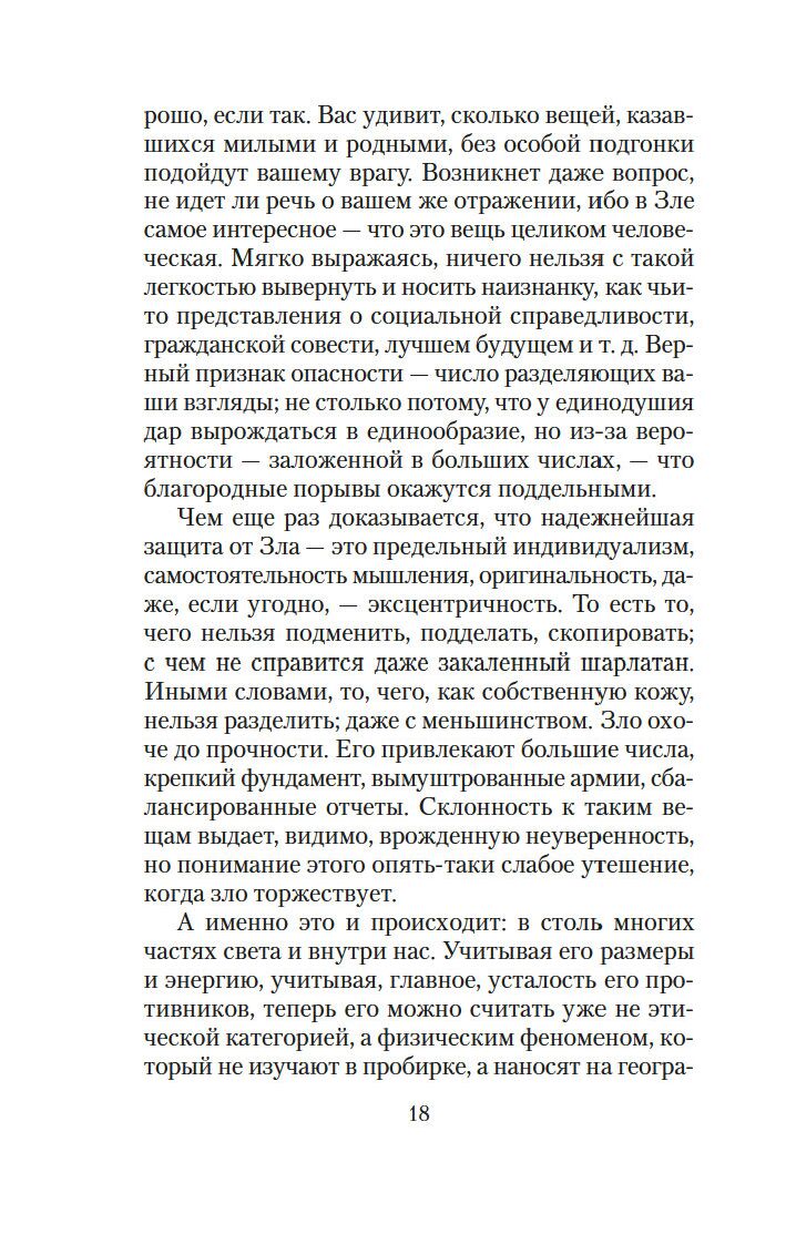 В книгу вошли избранные эссе Иосифа Бродского, написанные в эмиграции в 1980-1990-е годы. Большинство эссе были напечатаны в авторских сборниках "Less Than One" ("Меньше единицы", 1986) и "On Grief and Reason" ("О скорби и разуме", 1995) и публикуются в переводе на русский язык. К ним добавлены редко издаваемые "Размышления об исчадии ада" и "Писатель в тюрьме". Это тексты об истории и свободе, о природе власти и отношении к ней. Бродский рассуждает как о сути творчества вне зависимости от государственного строя, так и о влиянии внешних обстоятельств на человека пишущего.