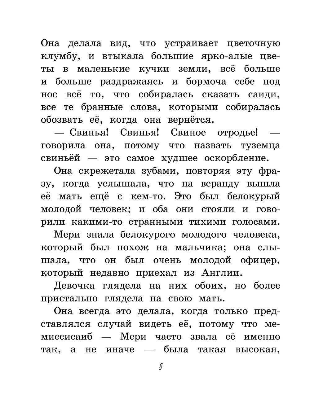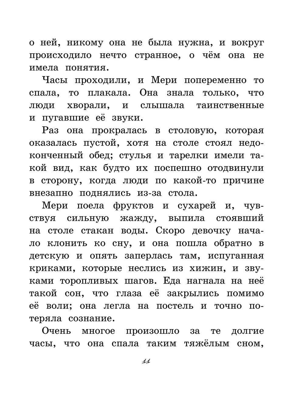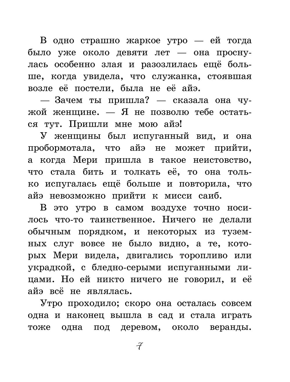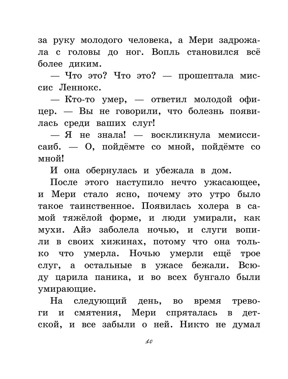 Главная героиня книги – сирота Мэри Ленокс, самая неприятная девочка, которую видел свет. Она оказалась в поместье своего дяди, где единственным развлечением для ребенка становятся прогулки в саду. Там девочка находит старую заросшую калитку. Что за ней скрывается? И почему никому в доме не разрешено ее обсуждать? Маленькой Мэри предстоит это выяснить, а заодно обрести верных друзей и измениться в лучшую сторону.