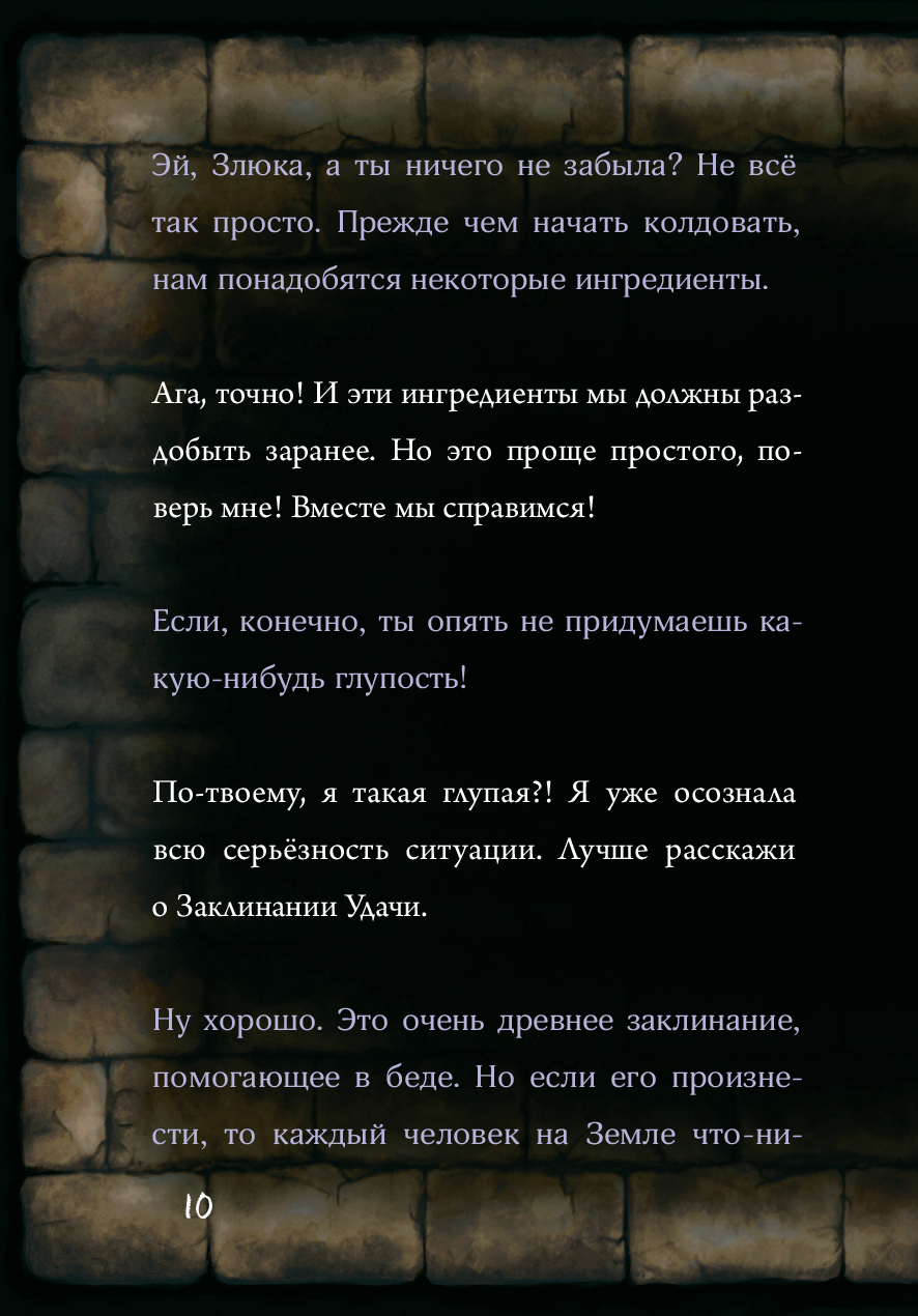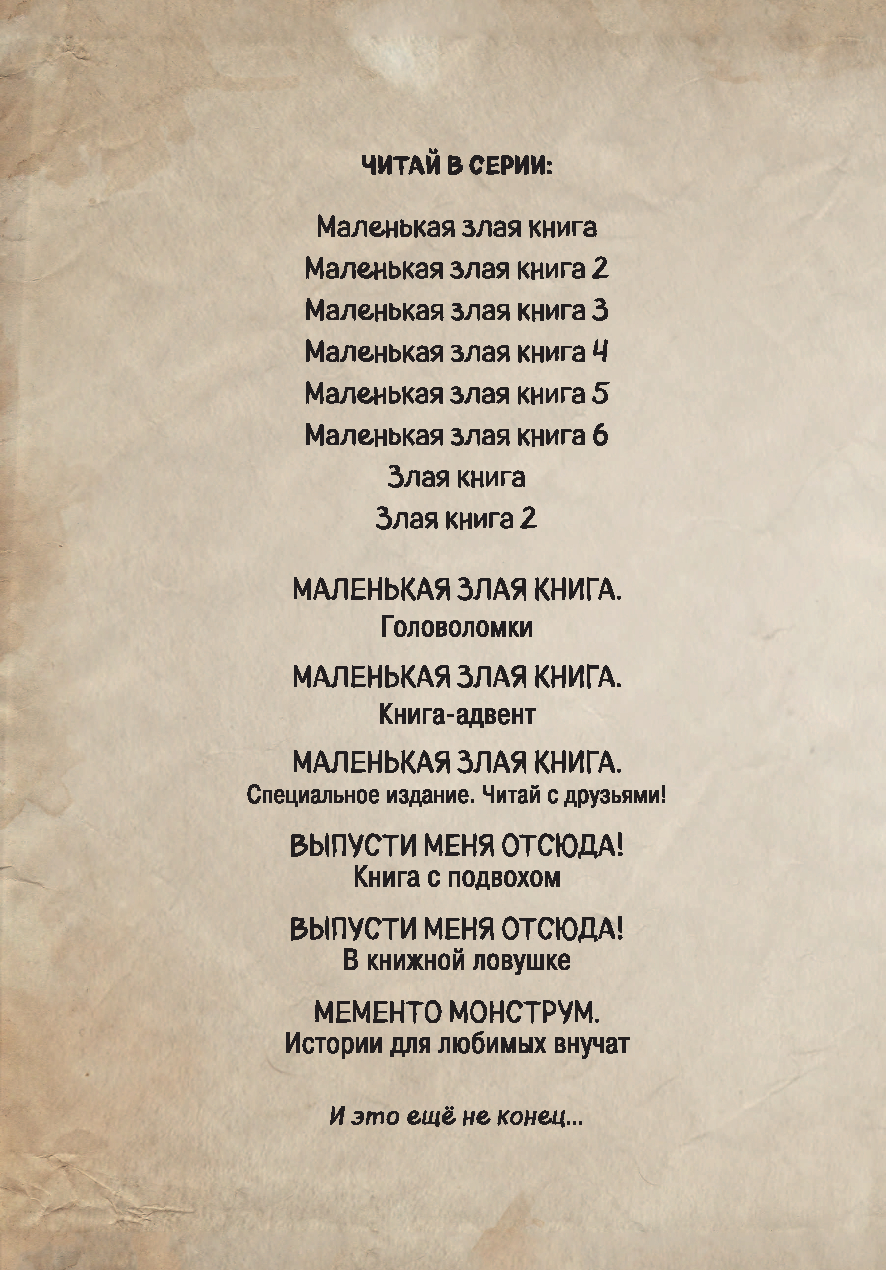 "Маленькая злая книга" снова с тобой! И ей срочно нужна помощь читателей! Обещаем, что если в тебе нет ни капли магии, с тобой ничего не случится. Но если ты чувствуешь дремлющие волшебные силы, то это будет самое опасн... Нет, самое весёлое ПРИКЛЮЧЕНИЕ в твоей жизни! (Только потом не говори, что мы тебя не предупреждали!) Как насчёт того, чтобы побывать в лаборатории писателя, одолеть тролльчиху, найти воздушный замок и заколдовать дракона? Тогда всех смельчаков мы приглашаем открыть первую страницу "Маленькой злой книги"!
