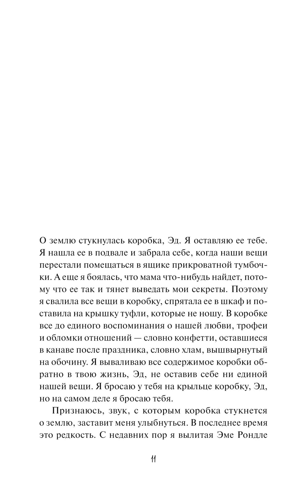 Однажды Мин влюбляется в Эда, а Эд – в Мин, и обоим кажется, что это навсегда. Но через несколько недель они расстаются, и вся история их отношений умещается в одной коробке: билет с первого похода в кино, коробок спичек, ярко-зеленая камера, катушка так и не проявленной пленки, сложенный из бумаги звездолет "Я не могу перестать думать о тебе"... Собирая эту коробку, Мин рассказывает о том, какой бывает первая любовь и почему иногда она заканчивается.