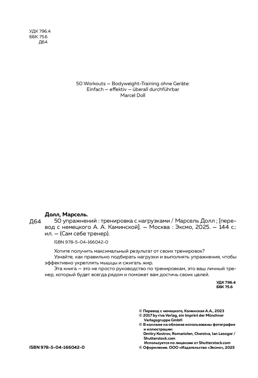| Название в оригинале | 50 Workouts – Bodyweight-Training ohne Geräte: Einfach – effektiv – überall durchführbar |