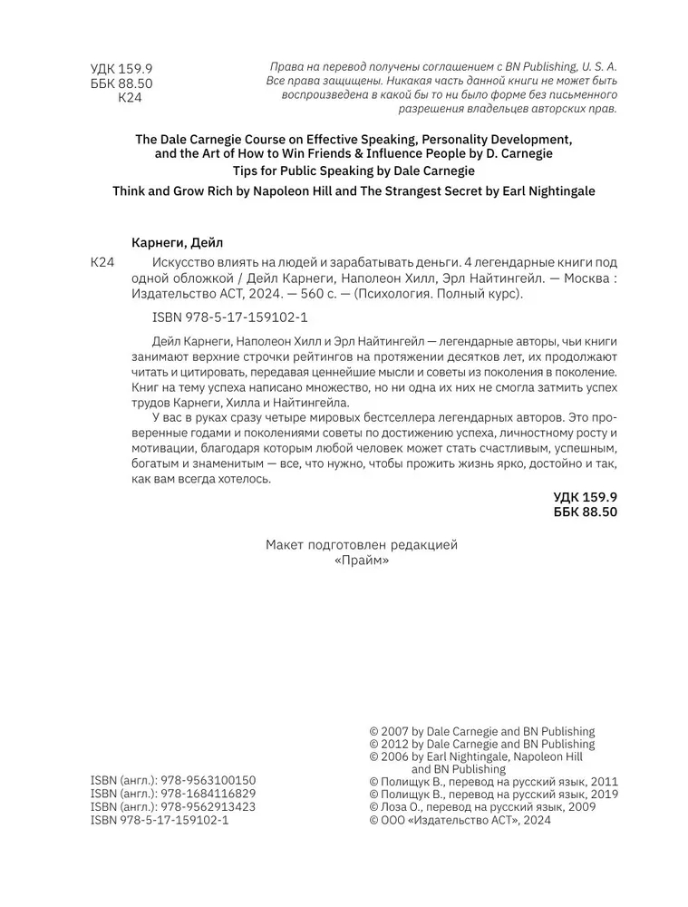 Дейл Карнеги, Эрл Найтингейл, Наполеон Хилл, 2024
