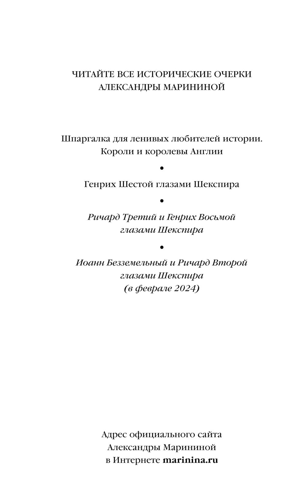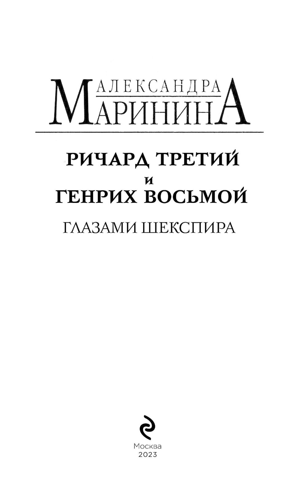 В новом историческом очерке Александра Маринина остроумно и увлекательно разбирает творчество гениального бытописца той эпохи – в фокусе внимания знаменитые трагедии Шекспира "Ричард Третий" и "Генрих Восьмой".