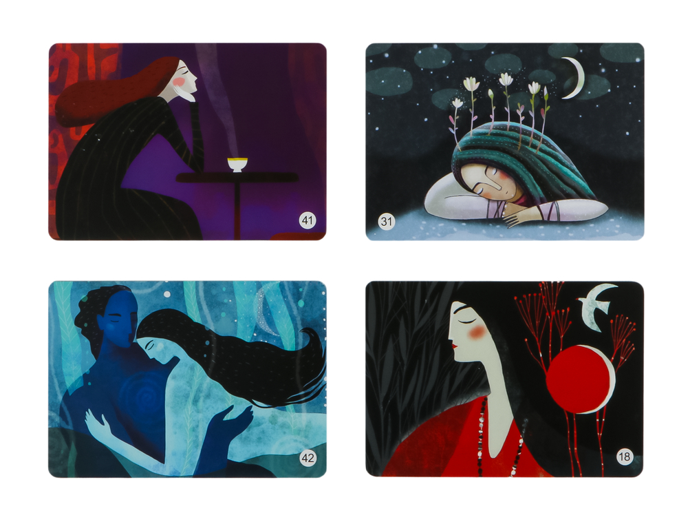 Художник, арт-педагог и сказкотерапевт Ирина Бабушкина создала 55 необычных метафорических карт "Лунный чай", чтобы вы смогли заглянуть в себя и ответить на волнующие вас вопросы. Ее карты помогут появиться в вашем воображении подругам, хранительницам, ведающим женщинам, целительницам и волшебницам. Они словно приходят с неторопливым разговором вечером, после шумного дня на чашечку ароматного лунного чая. Они постараются поддержать, посоветовать, рассмешить, помочь заметить смыслы, простые, но важные здесь и сейчас.