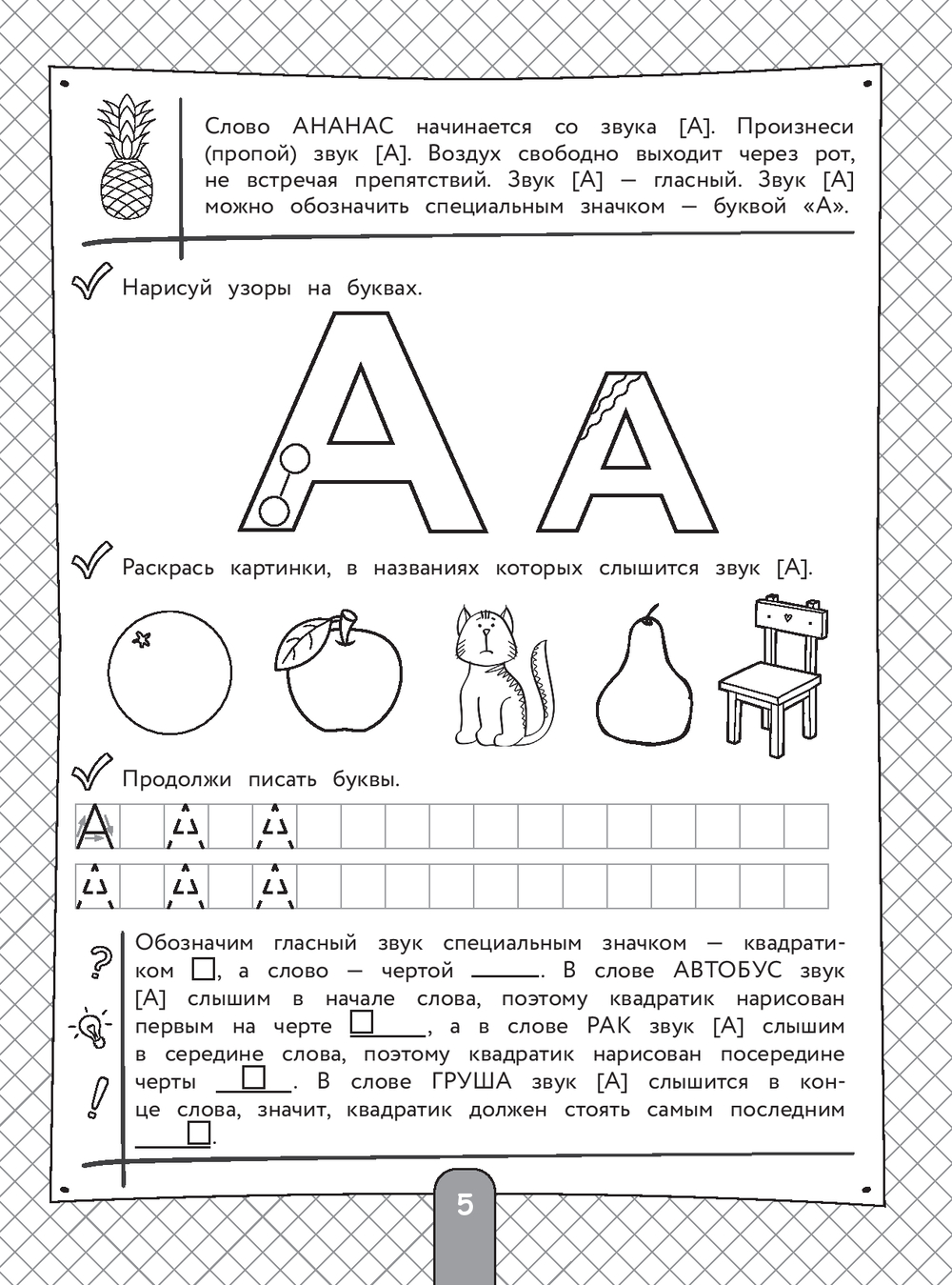 Выполняя увлекательные игровые задания, дошкольник поймёт, чем отличается звук от буквы, сможет развить фонематический слух, овладеет навыками звуко-буквенного анализа, расширит словарный запас, научится писать и читать. Именно эти навыки позволят ему в дальнейшем успешно учиться и реализовать все свои таланты.
