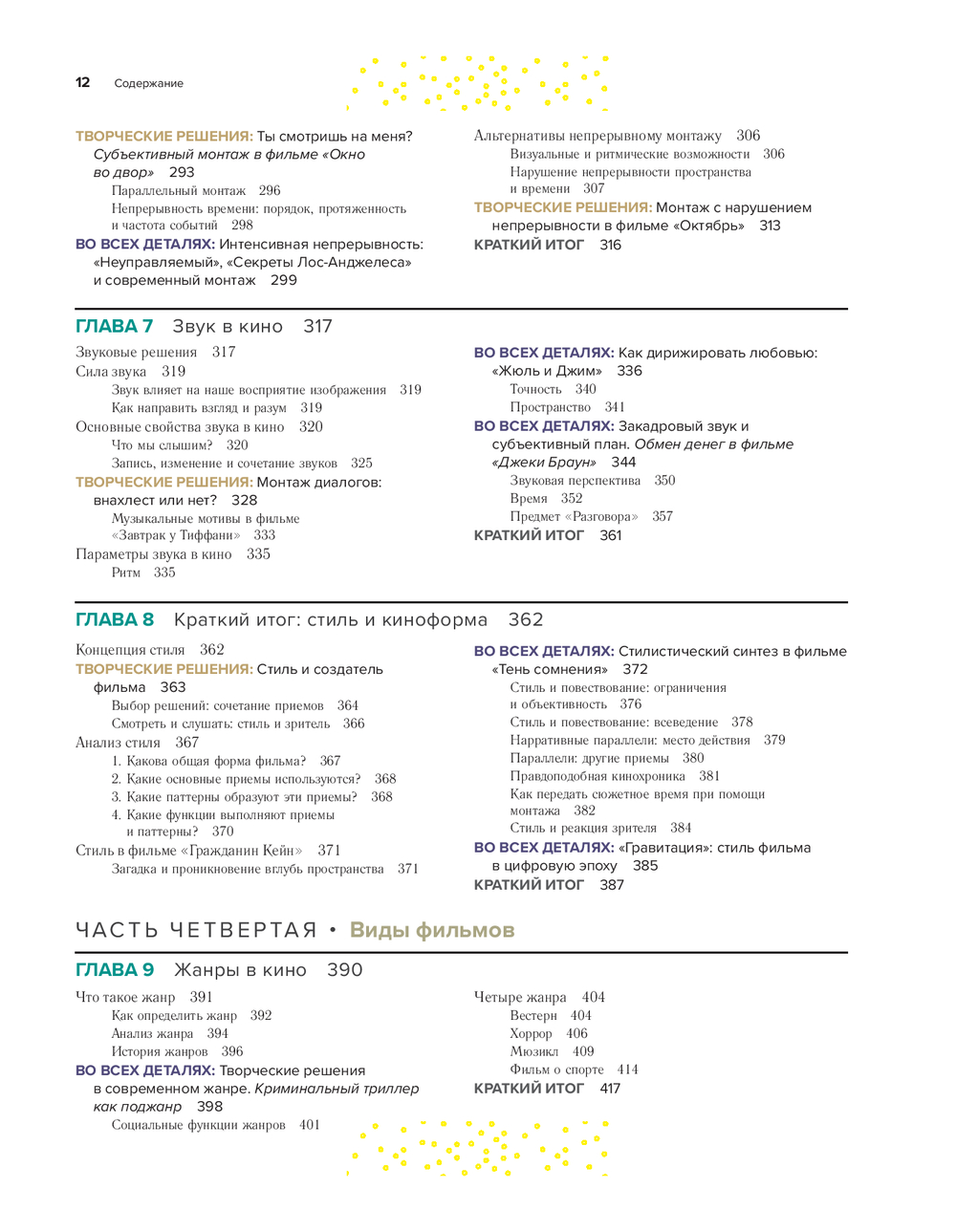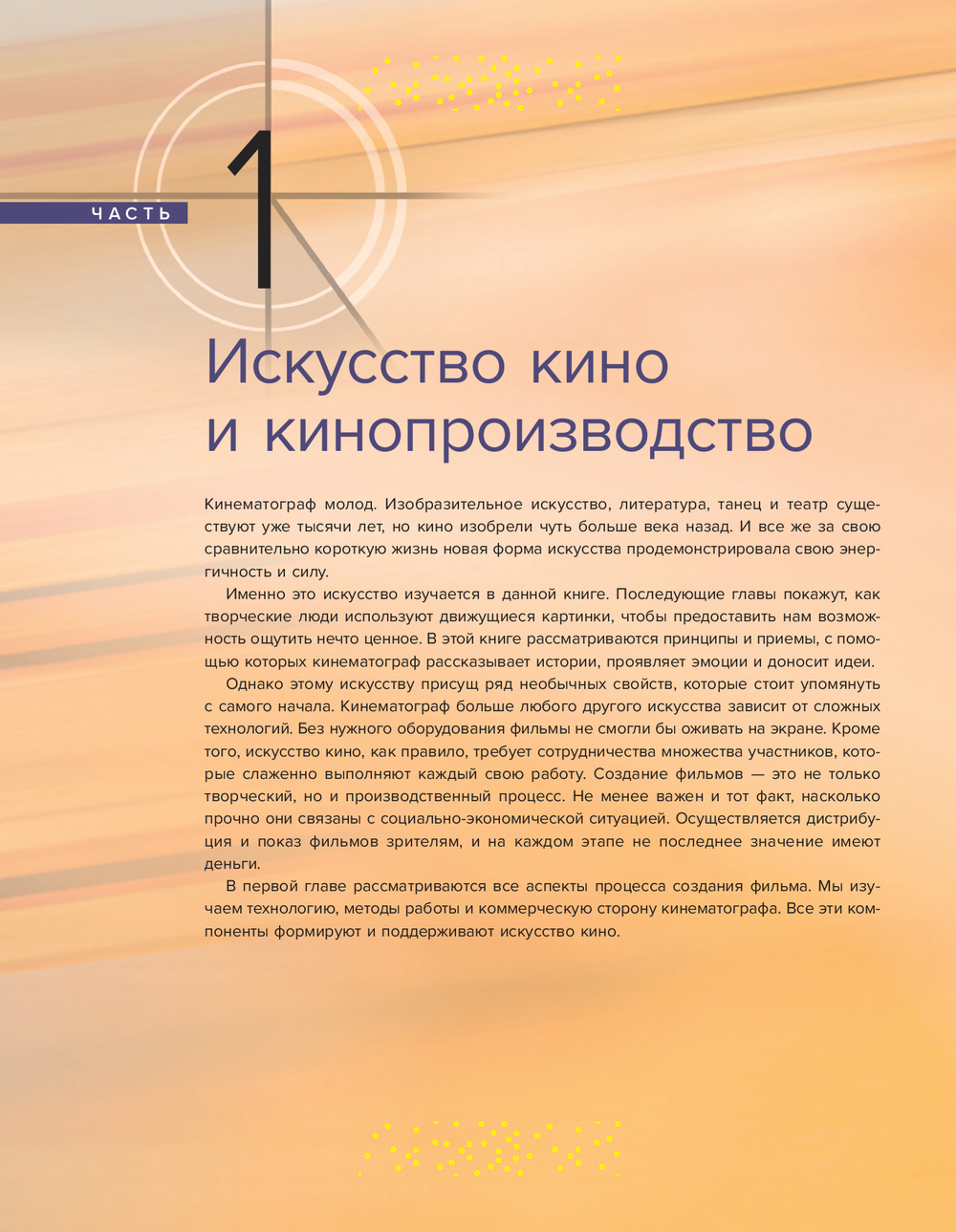 Эта книга – основа основ, счастливый билет в волшебный мир кинематографа. Четкая и понятная структура позволяет свободно перемещаться по книге и читать с любого места, в зависимости от того, какая тема вас интересует сегодня. "Искусство кино" охватывает все этапы становления кинематографа на примерах как старых классических фильмов, так и современных блокбастеров.