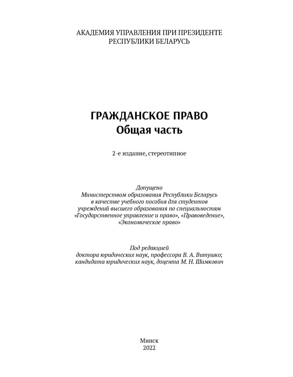 Учебное пособие подготовлено авторским коллективом кафедры правового обеспечения экономической деятельности Академии управления при Президенте Республики Беларусь с участием профессорско-преподавательского состава других белорусских вузов, а также юристов, занимающихся исследованием проблем современной цивилистики.
