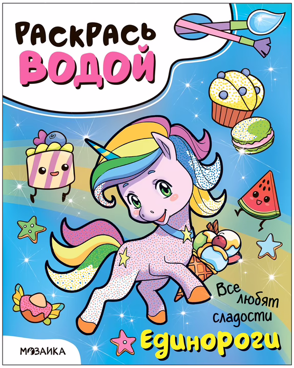 Вместе с героями книжки "Все любят сладости" серии "Раскрась водой. Единороги" ребёнок отправится в увлекательное путешествие в долину сладостей. С принцессой и единорогами точно не заскучаешь! А стоит лишь обмакнуть кисточку в воду и провести по рисунку, как сказочный мир заиграет новыми красками. Водные раскраски отлично подходят для развития творческого мышления.