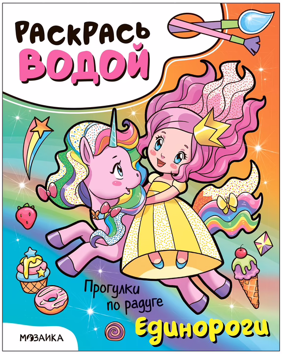 Вместе с героями книжки "Прогулки по радуге" серии "Раскрась водой. Единороги" ребёнок отправится в увлекательное путешествие по радуге. С принцессой и единорогами точно не заскучаешь! А стоит лишь обмакнуть кисточку в воду и провести по рисунку, как сказочный мир заиграет новыми красками. Водные раскраски отлично подходят для развития творческого мышления.