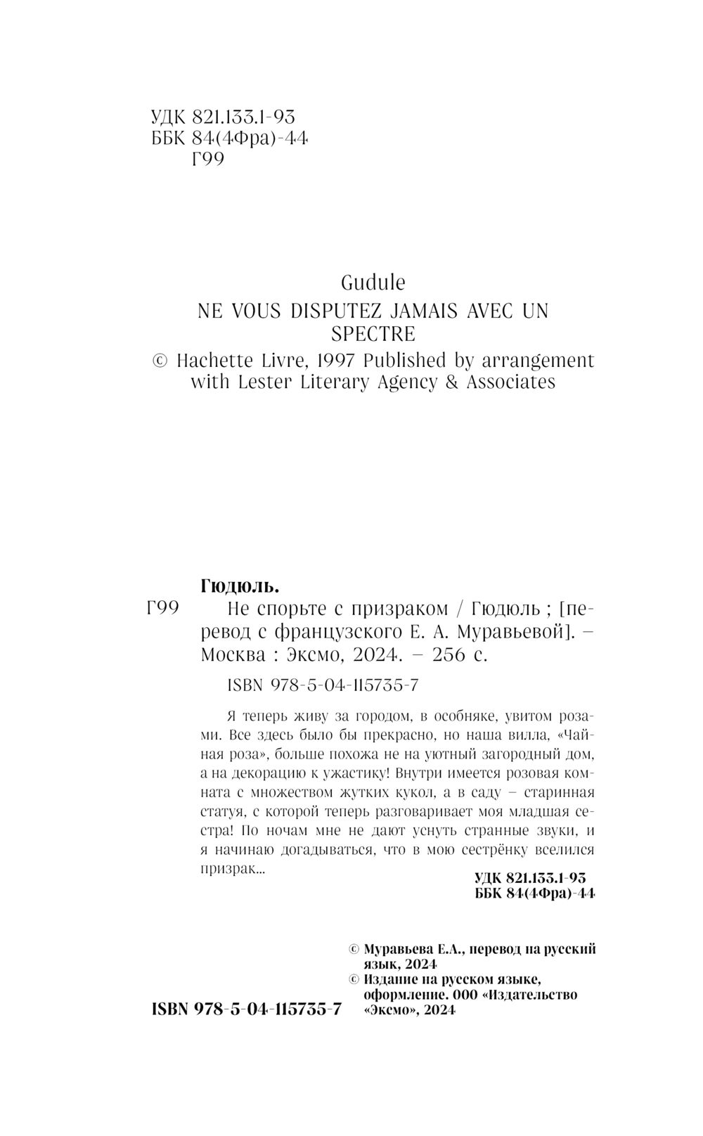 | Название в оригинале | Ne vous disputez jamais avec un spectre |