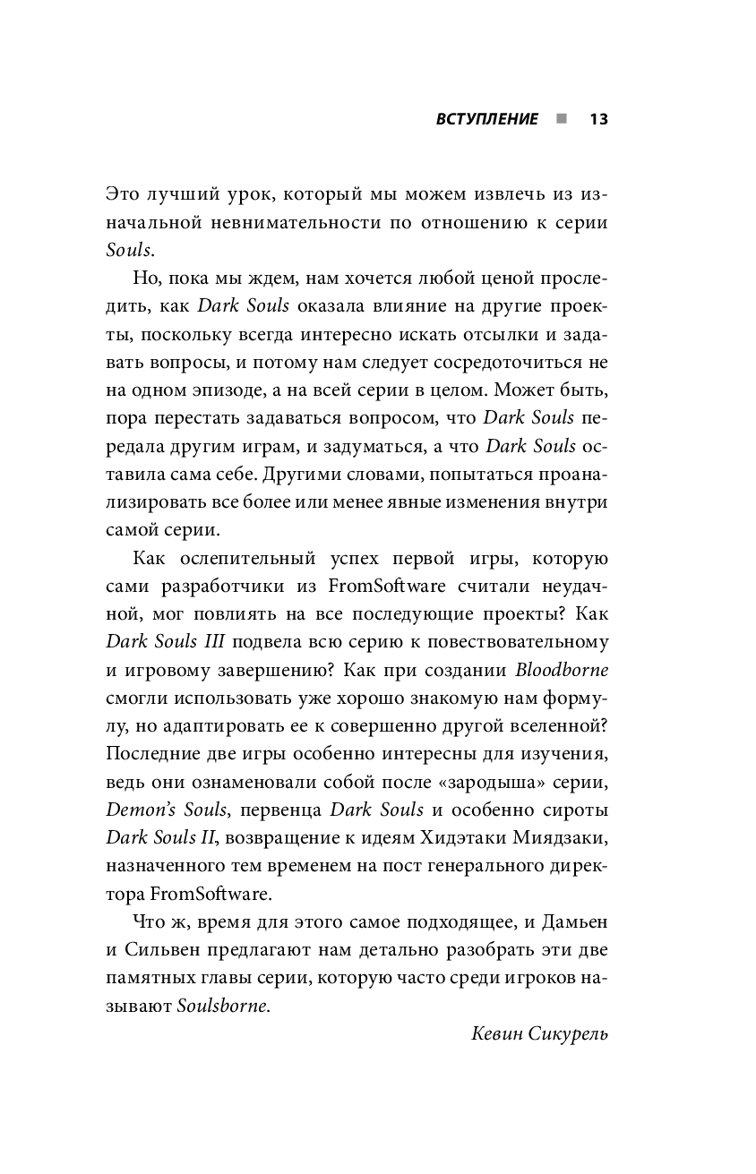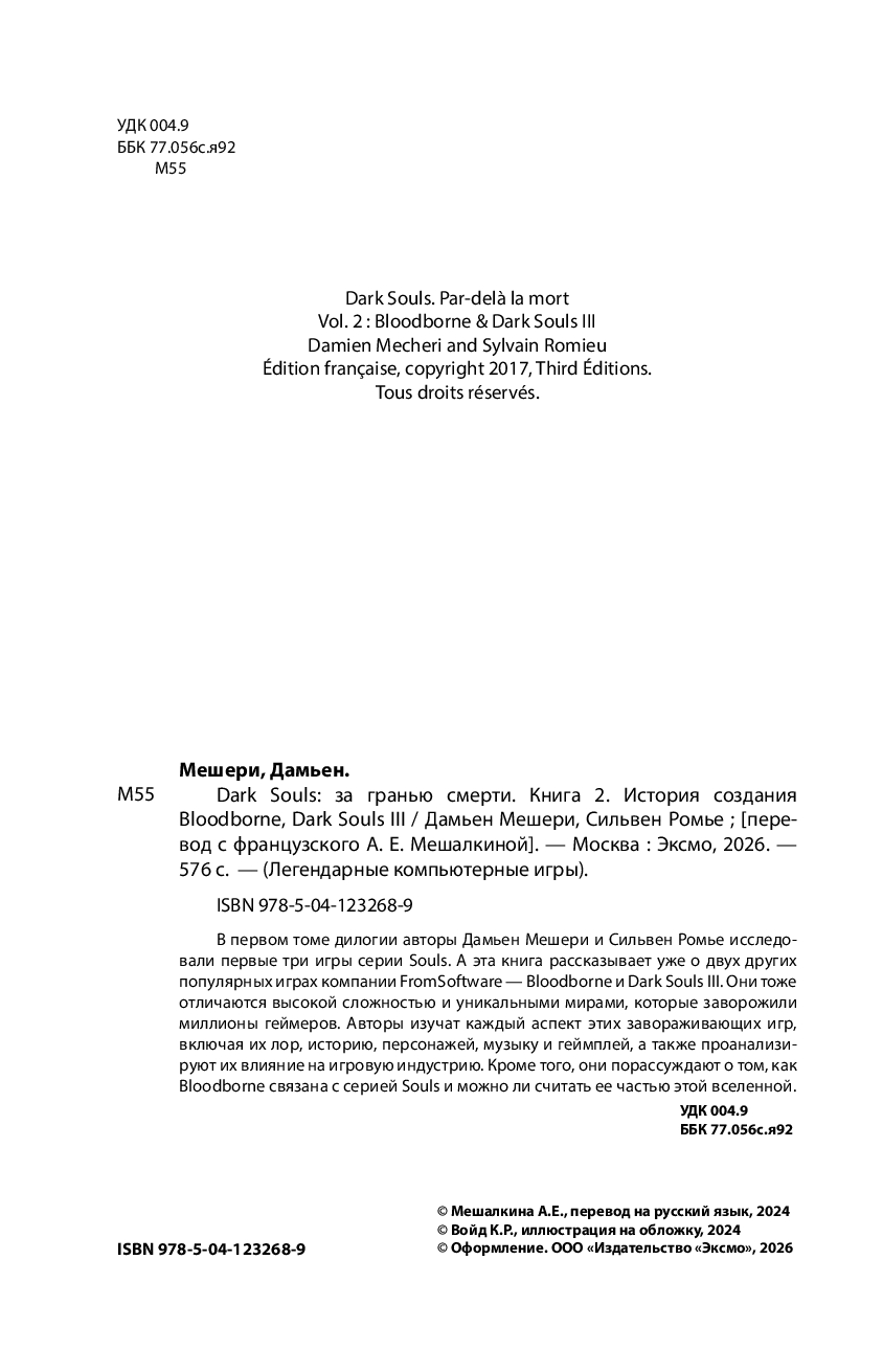 В первом томе дилогии авторы Дамьен Мешери и Сильвен Ромье исследовали первые три игры серии Souls. А эта книга рассказывает уже о двух других популярных играх компании FromSoftware – Dark Souls III и Bloodborne. Они тоже отличаются высокой сложностью и уникальными мирами, которые заворожили миллионы геймеров. Авторы изучат каждый аспект этих завораживающих игр, включая их лор, историю, персонажей, музыку и геймплей, а также проанализируют их влияние на игровую индустрию. Кроме того, они порассуждают о том, как Bloodborne связана с серией Souls и можно ли считать ее частью этой вселенной.