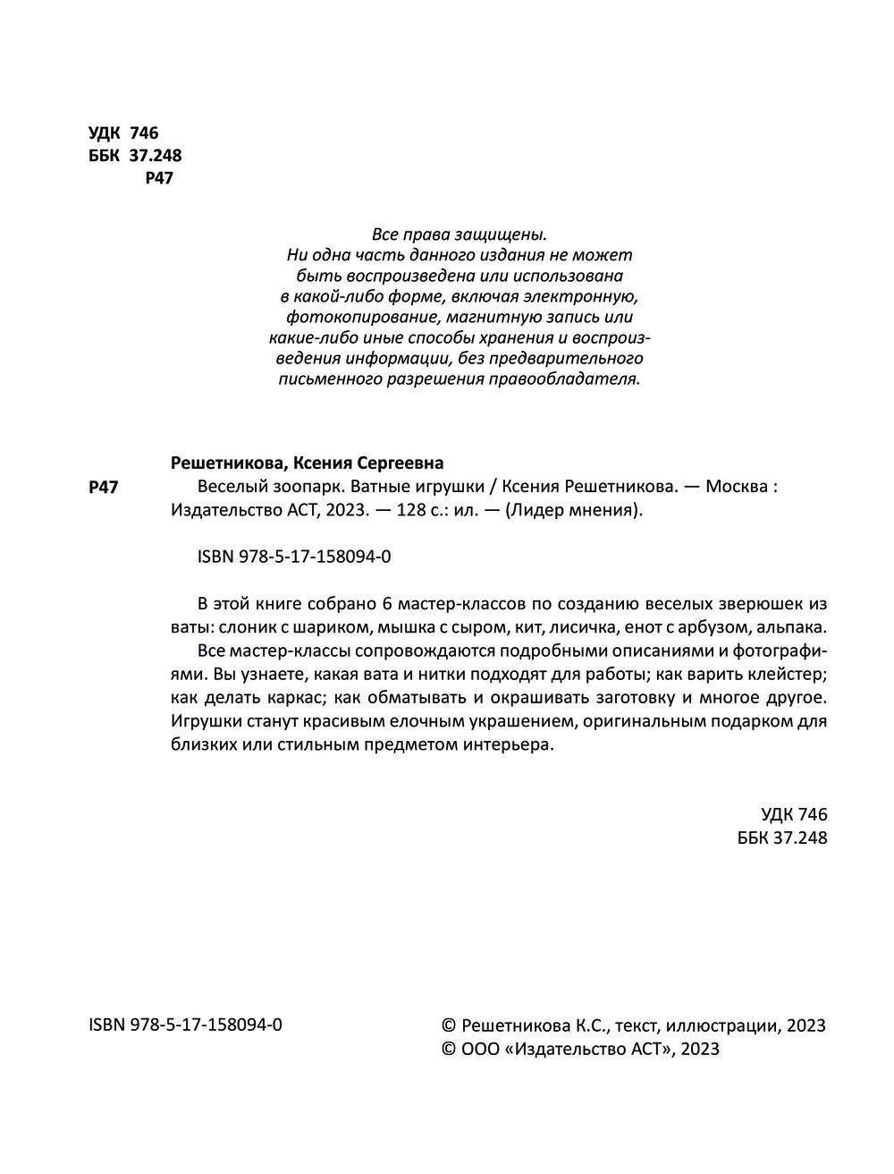 С помощью этой книги вы сможете создать шесть веселых зверюшек: слоника с шариком, мышку с сыром, кита, лисичку, енота с арбузом, альпаку.