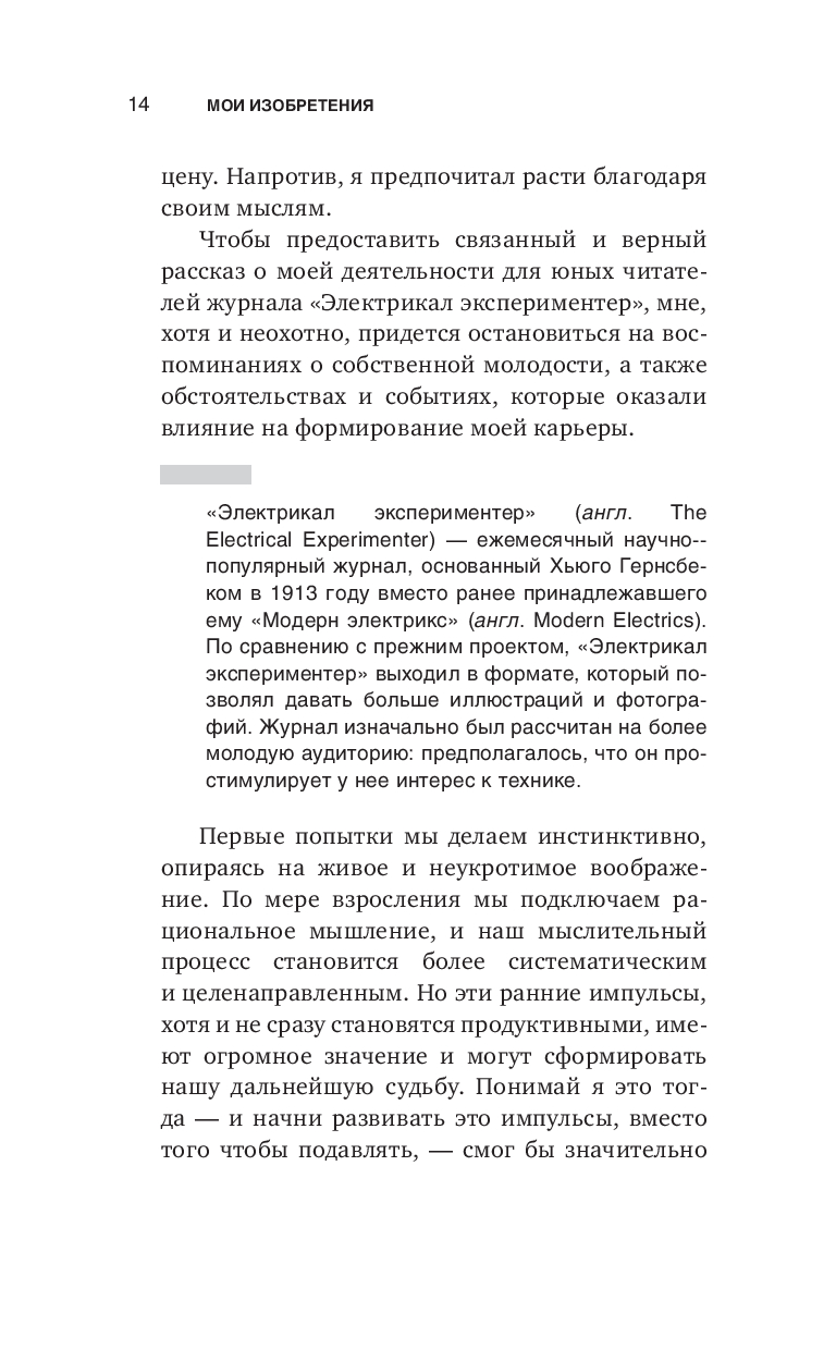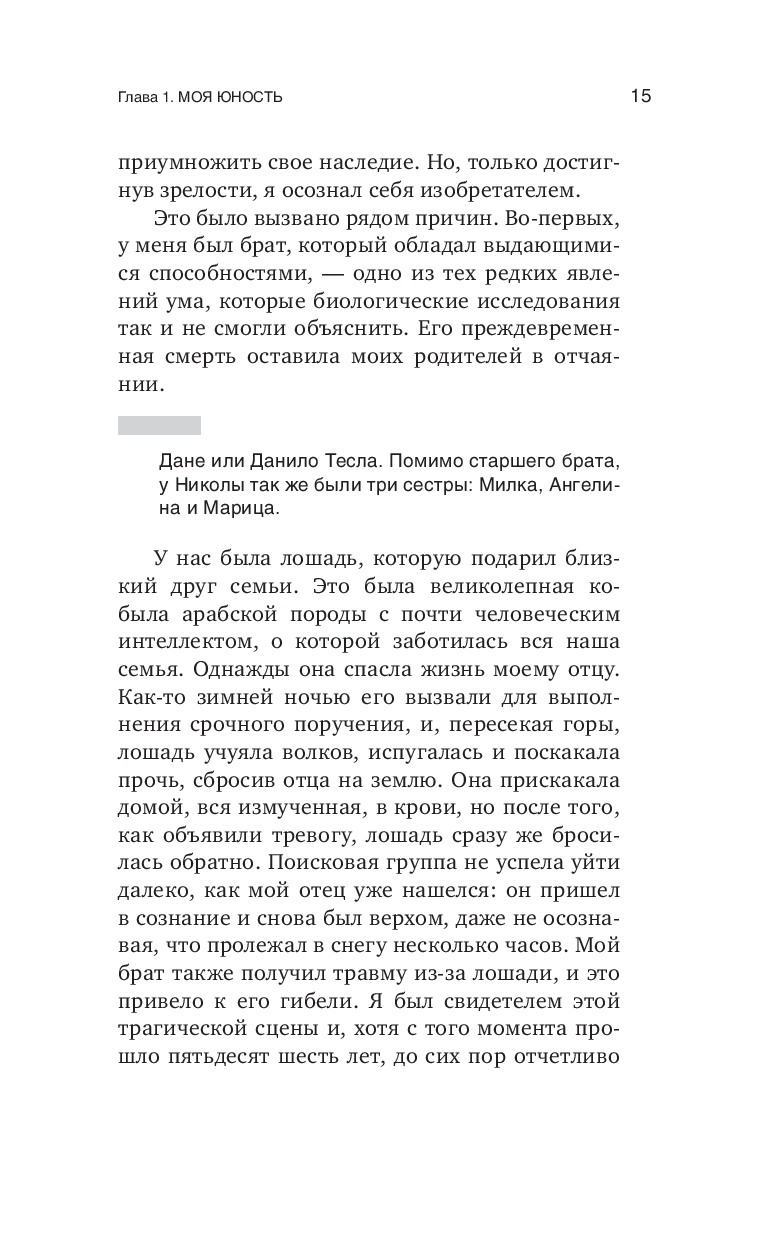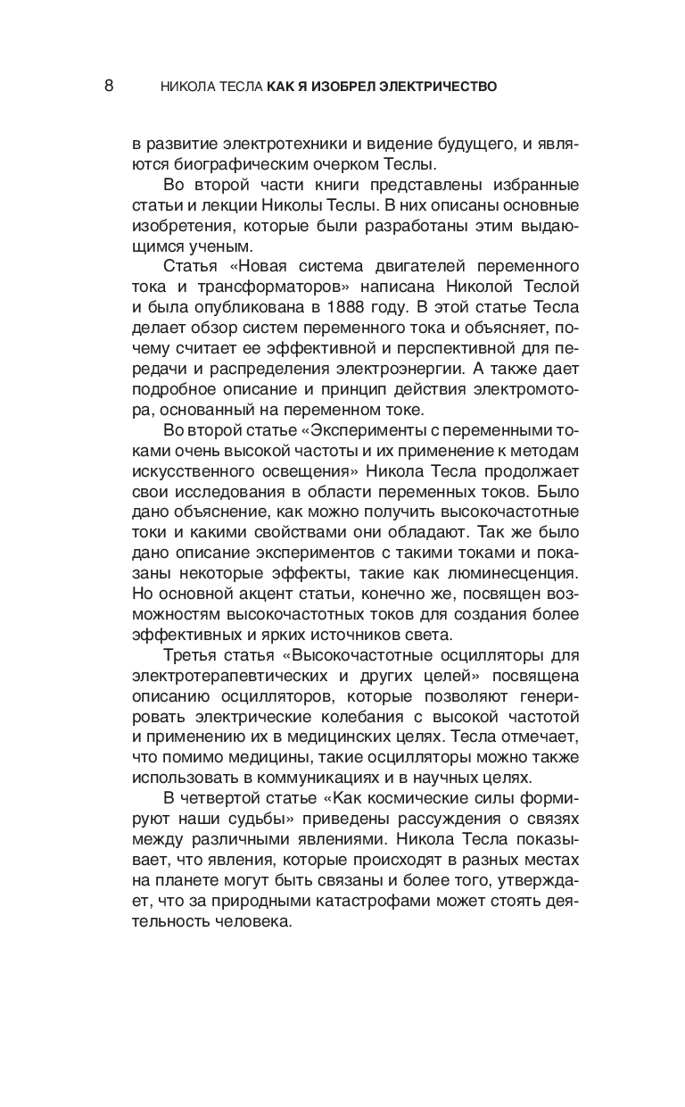 В автобиографии Никола Тесла рассказывает о жизни, целиком посвященной естественным наукам. А его суждения и уникальный ход мыслей раскрывают не только личность ученого, но и сущность его изобретений, часть из которых спустя годы получили заслуженное признание и применение в современном мире.