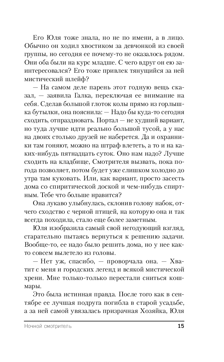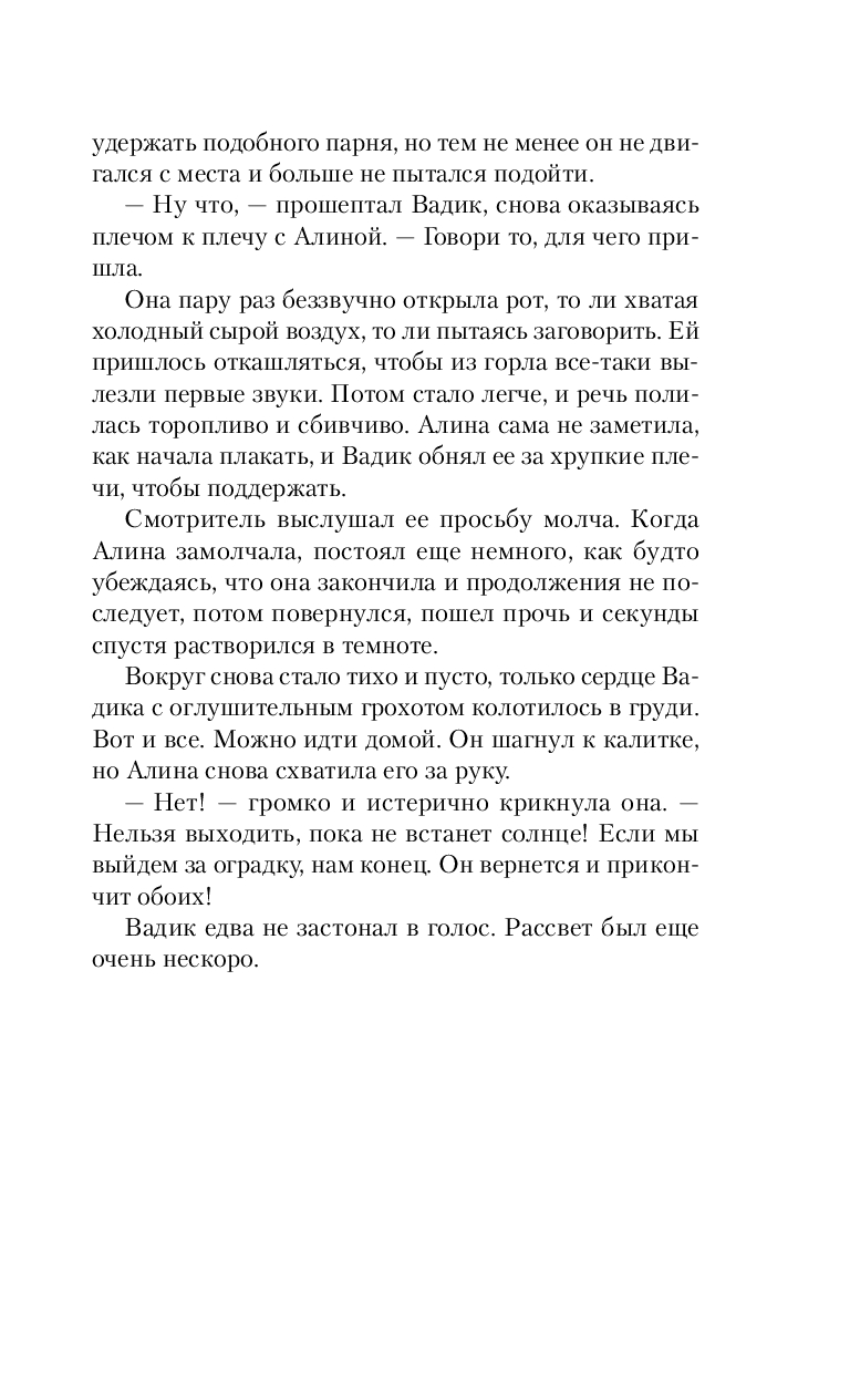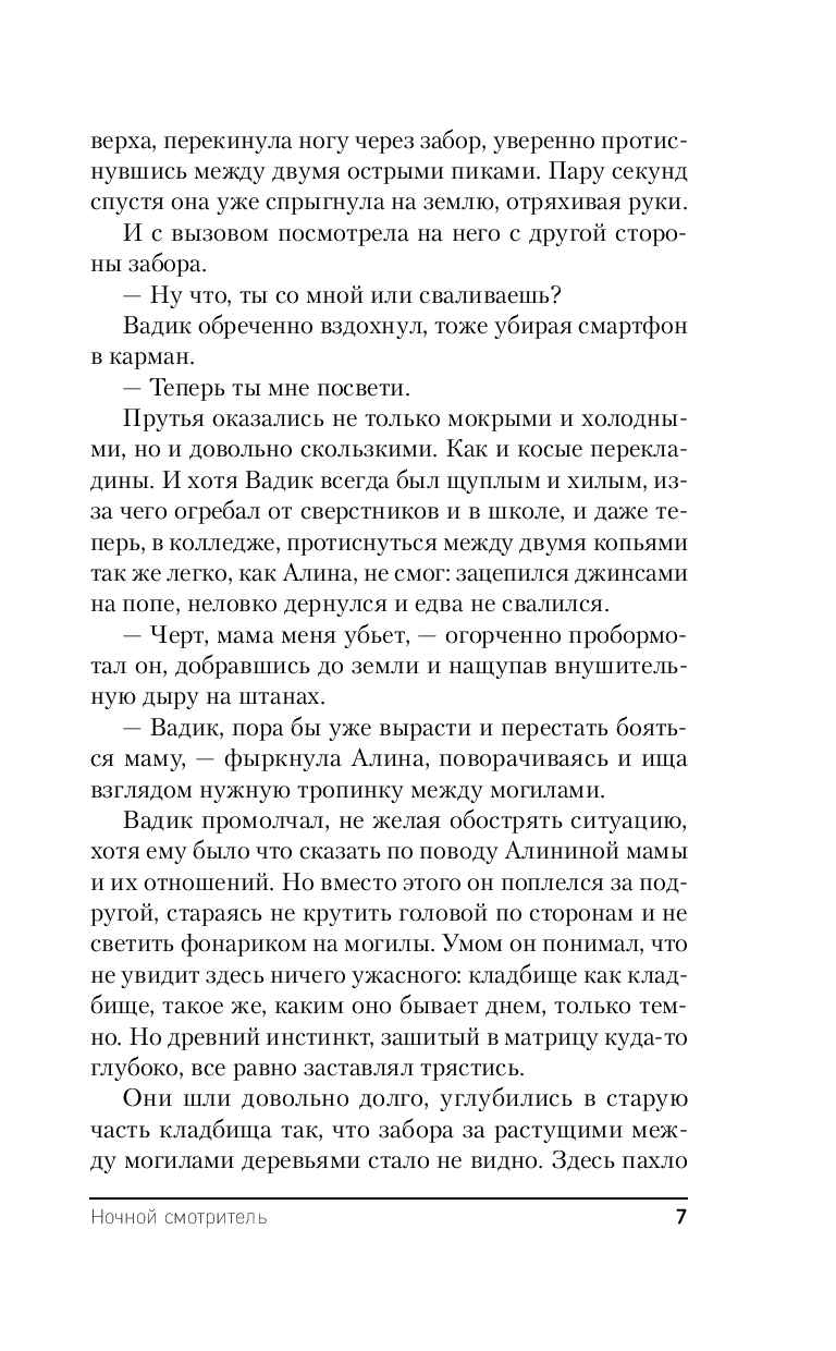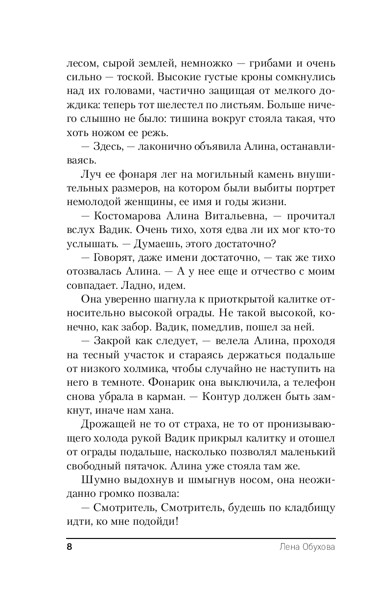 После событий в усадьбе Грибово Юля старается держаться подальше от странных мест и их смертельных историй, но Влад втягивает ее в расследование загадочного убийства, произошедшего на кладбище: мужчину нашли задушенным на могиле его полного тезки, умершего много лет назад. Вскоре за этой смертью следуют и другие. Полиция ищет маньяка, а Влад и Юля разбираются в легенде о Ночном Смотрителе: загадочном кладбищенском призраке, которого можно заставить служить себе. Но стоит ошибиться, он заберет в отместку твою жизнь. Удастся ли Владу и Юле не ошибиться?