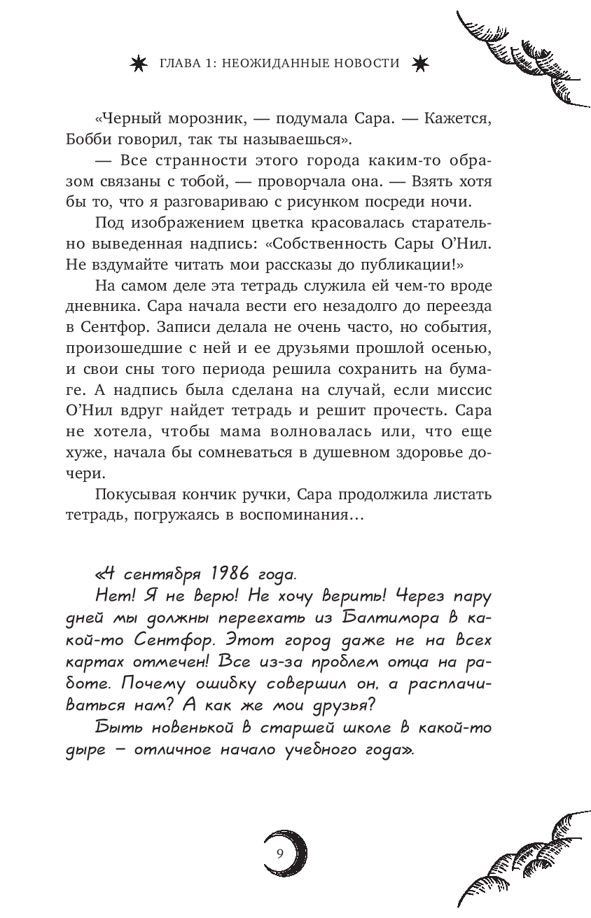 От переезда из Балтимора в маленький городок Сентфор Сара О'Нил не ожидала ничего хорошего. Пасмурная погода и необходимость осваиваться в новой школе удручали ее. С первого дня пребывания в городе Сара превратилась в магнит для мистических тайн и страшных событий, благодаря которым подружилась с Кэнди, Дереком и Бобби.