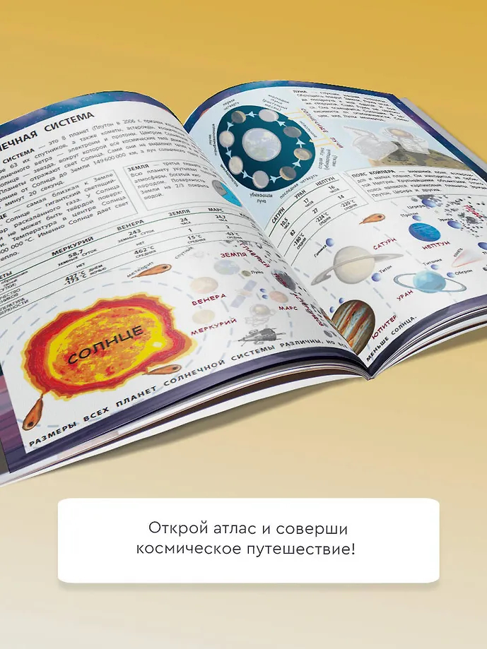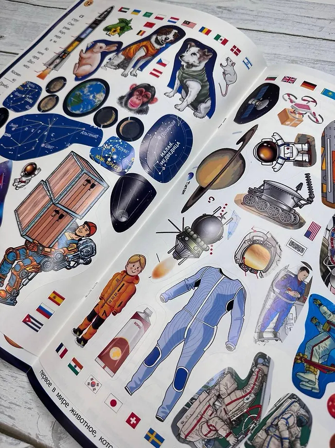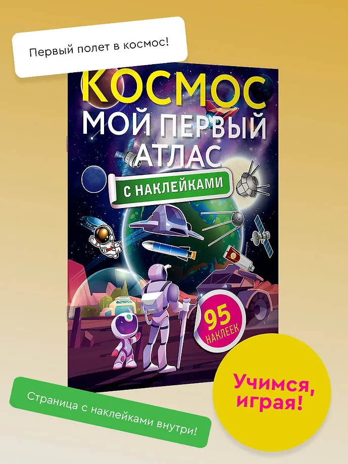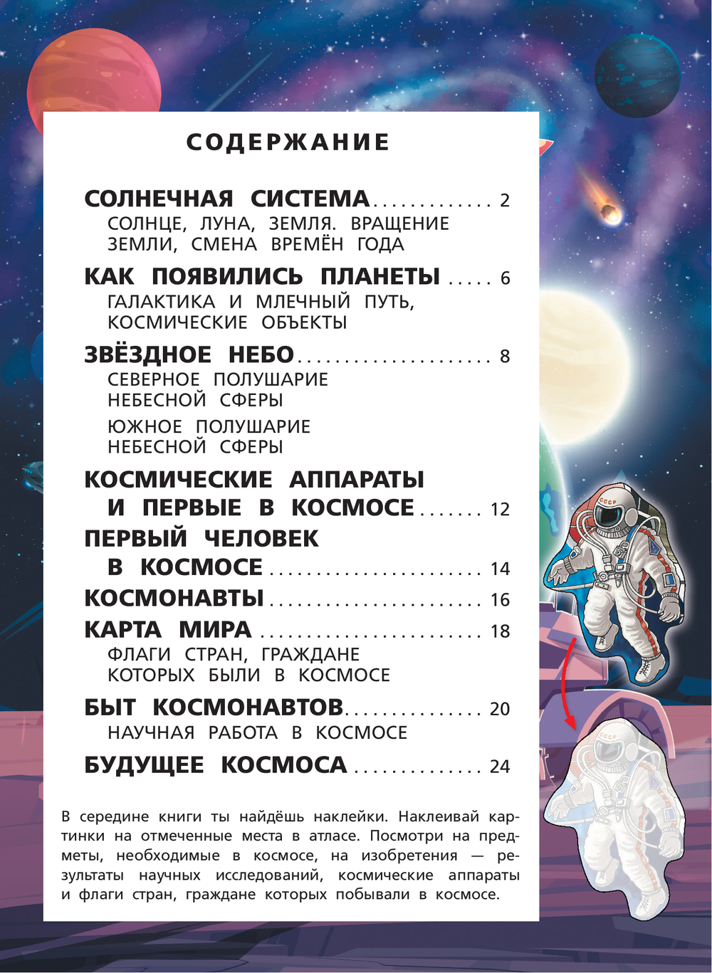 Открой атлас и соверши космическое путешествие. Планеты и созвездия Солнечной системы, космонавты и космические аппараты, научные достижения и изобретения, разработанные благодаря опытам, проводимым на космических станциях. В середине книги расположены наклейки. Находи в книге отмеченные места и соответствующие наклейки. Это поможет запомнить сложную, но интересную информацию. Размещенная в атласе информация будет интересна и для девочки, и для мальчика. Игровые занятия с нашим атласом расширяют кругозор и словарный запас, тренируют память, внимание, наблюдательность, смекалку и творческие способности.