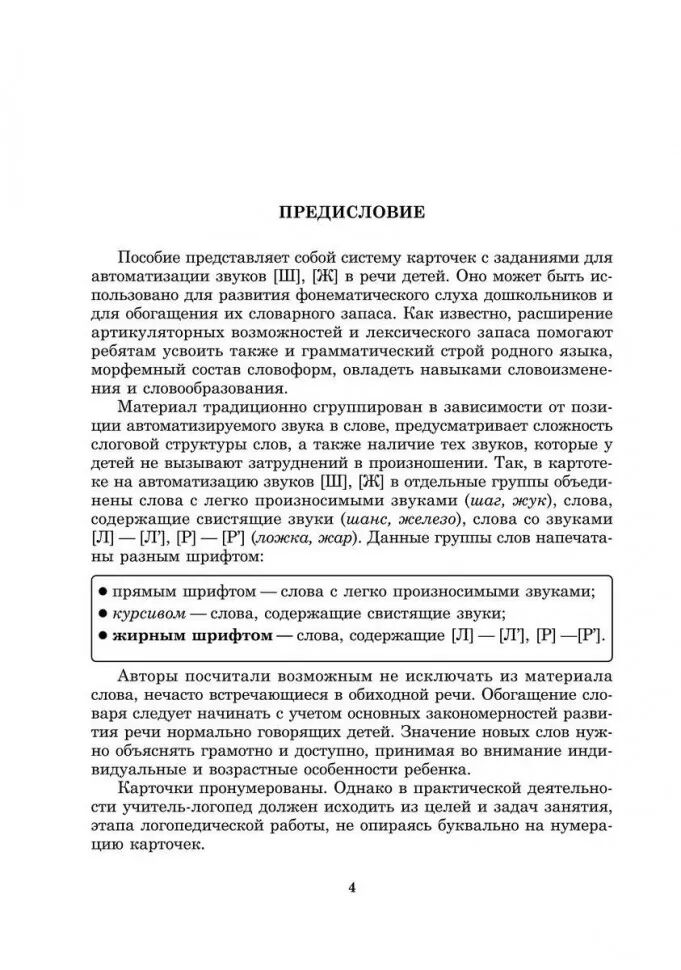 Перед вами не просто логопедическое пособие, а целая система карточек. На карточках – разнообразные задания для автоматизации звуков [ш], [ж] в речи. Карточки удобно использовать и во время логопедических занятий, и для закрепления правильного звукопроизношения дома после занятий, на каникулах, в поездках. Инструкцию по работе с карточками вы найдёте в предисловии.