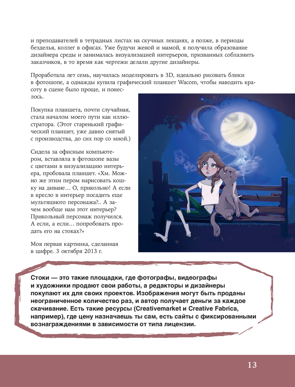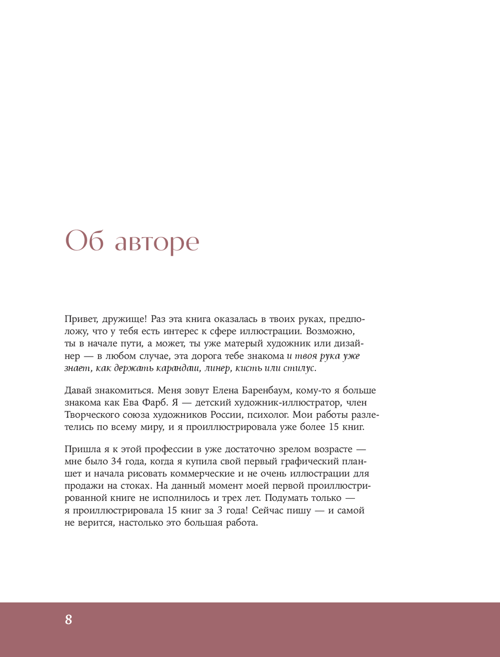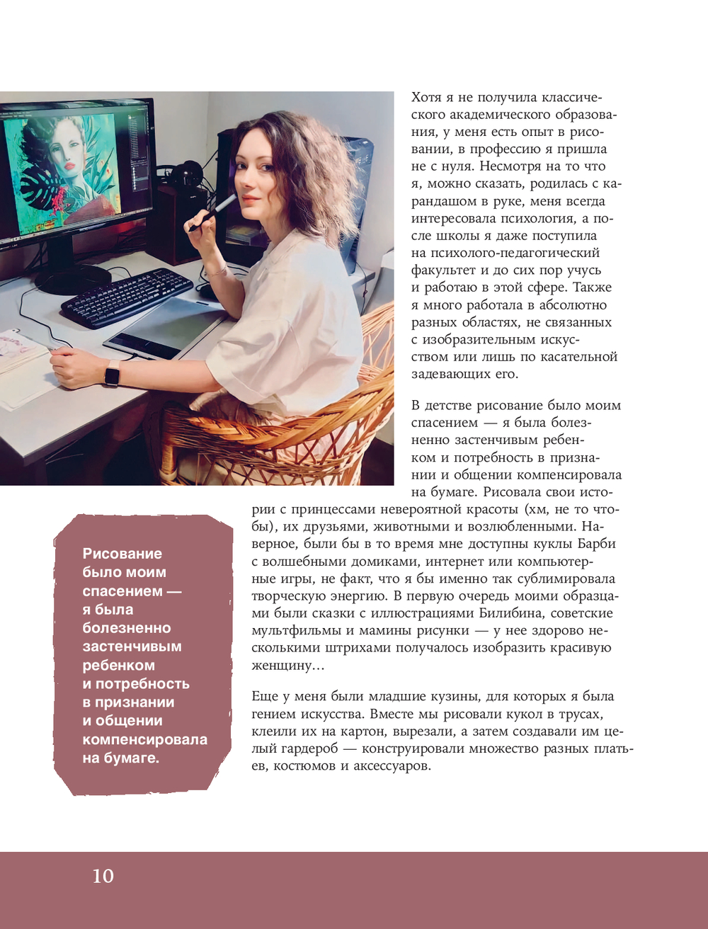 Автор книги проведет вас через весь процесс создания героя – от первого брифа до внесения его в свое портфолио. Книга покажет, как искать свой стиль, как работать с историей персонажа и зачем составлять его анкету, как разбираться в теории цвета и выбирать форму героя, а также как наделить свои иллюстрации характером и эмоциями. Будь то научная фантастика или нонфикшен, милые животные или главный злодей произведения, вы откроете для себя безграничные возможности создания уникальных персонажей для книжной иллюстрации, комиксов, мультфильмов, видеоигр и многого другого!