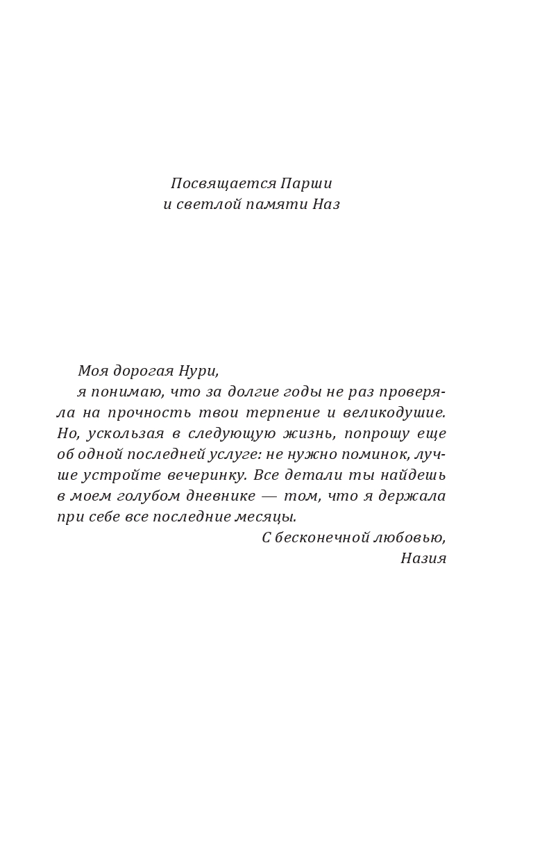 В последние дни жизни Назия вновь берет в руки перо и пишет шесть писем, которые должны найти адресатов после ее кончины.