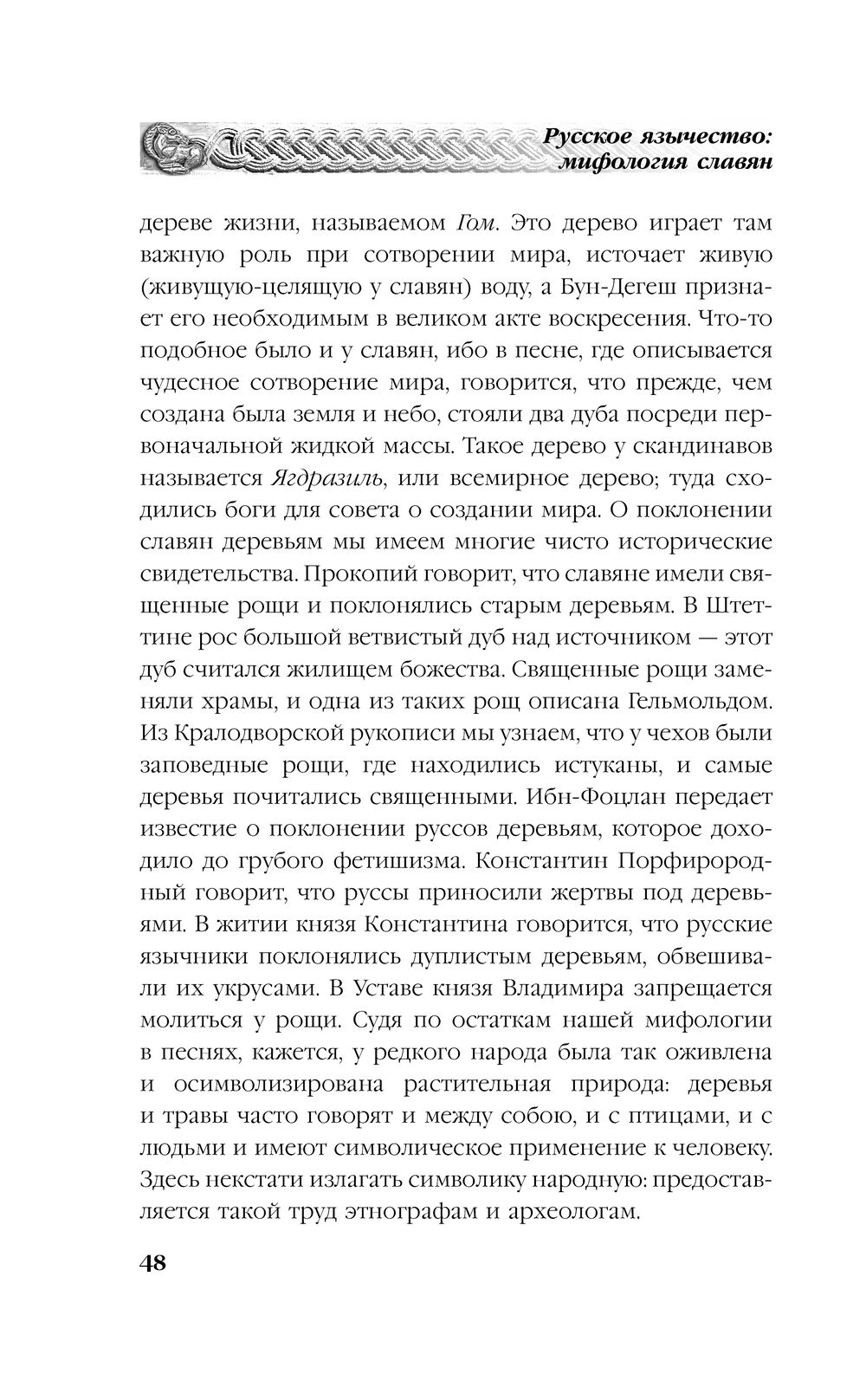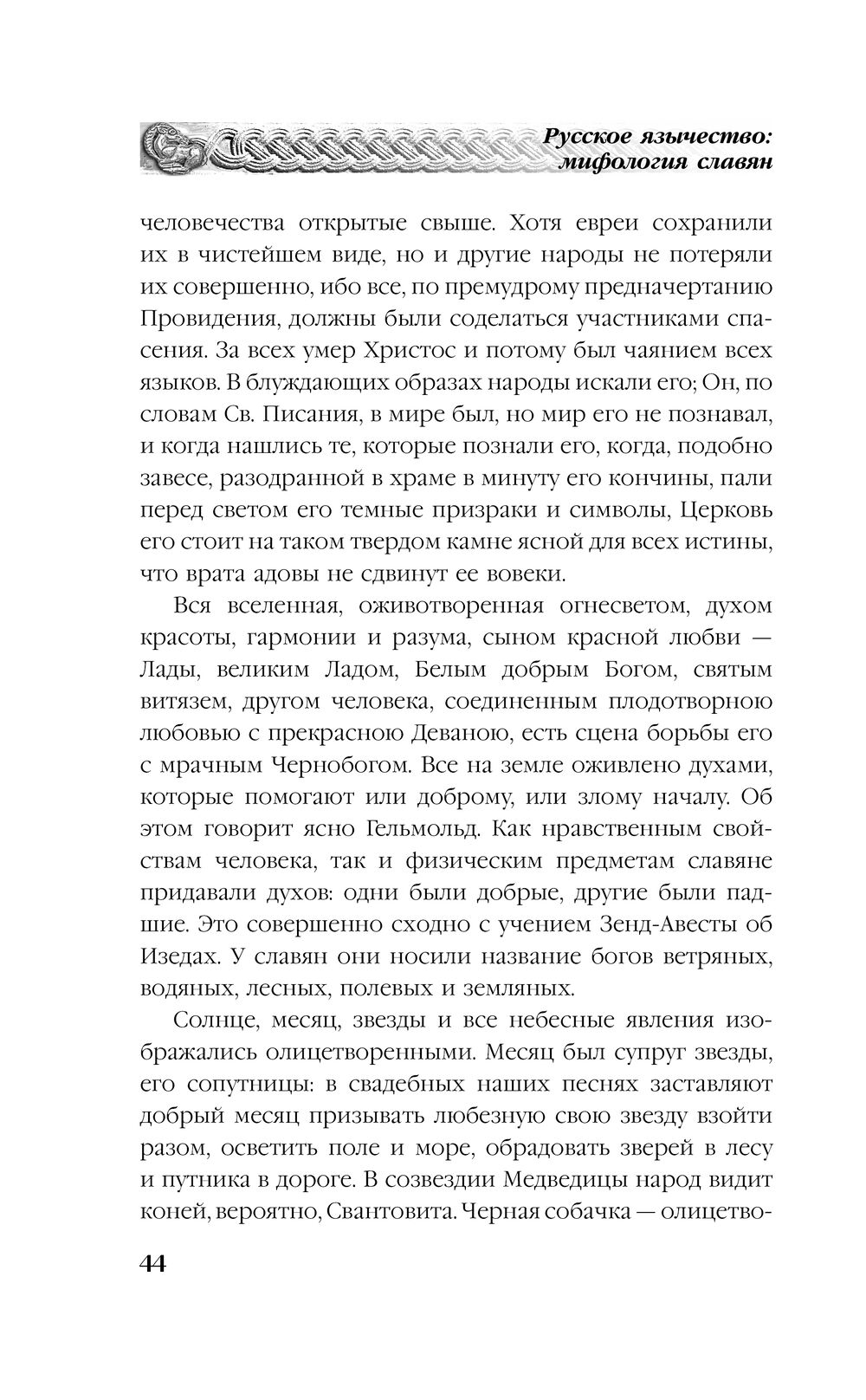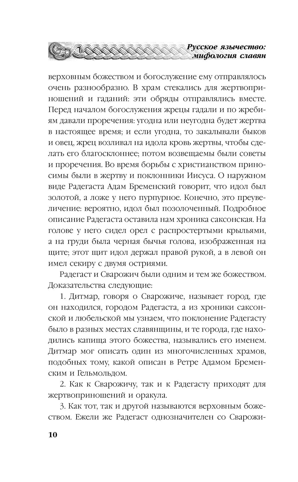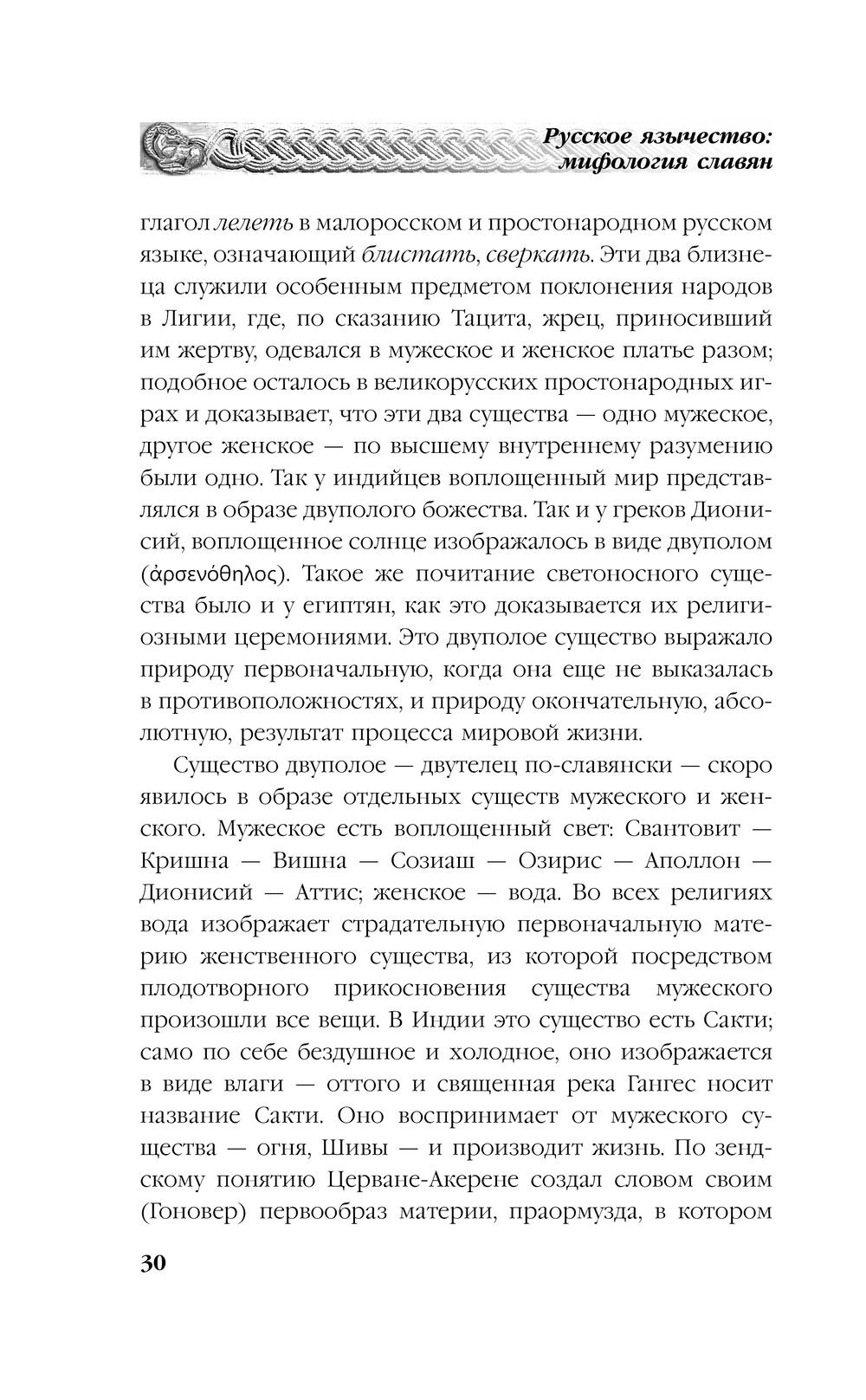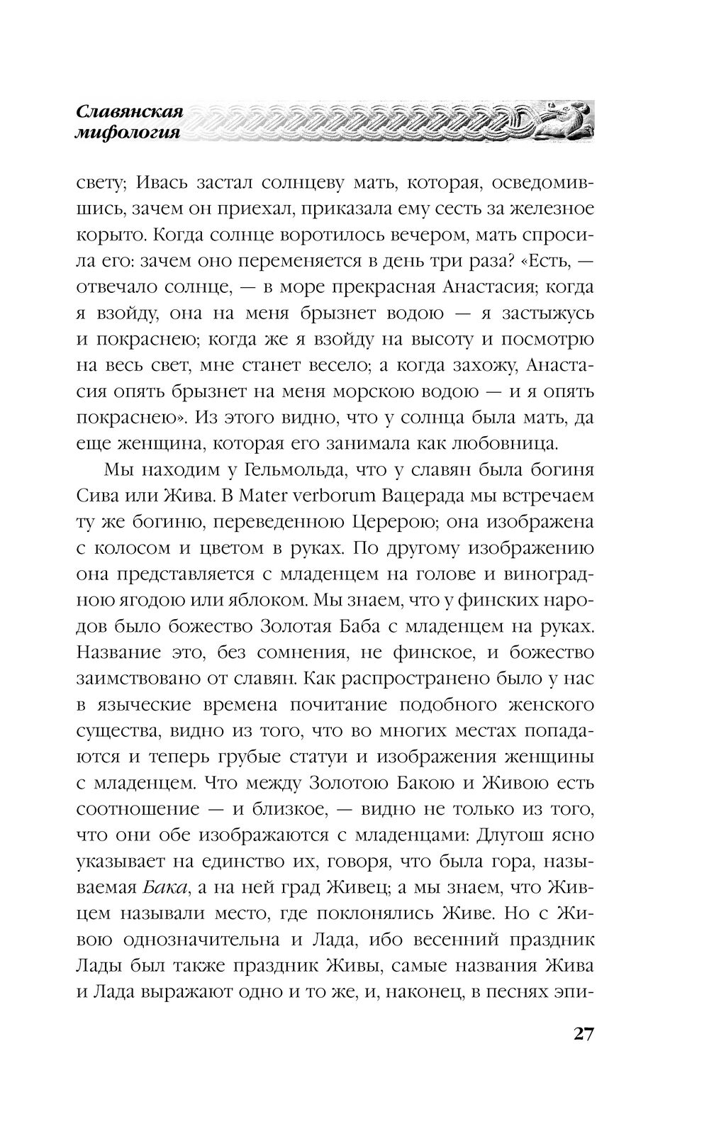 Перун, Сварог, Даждь-бог, Радегаст, Свантовит, Бел-бог, Яровит, Жив, Лад, Лель – много ли мы знаем об этих божествах, олицетворявших у наших языческих предков различные силы природы и человеческого бытия: света, солнца, весны, любви, войны? А празднества – Иван Купала, Велик день, Коляды, гадание на соломине, этимология слов: Руса, Россь – русло; огород, загород – город; сад – верт – вертоград? В своем фундаментальном труде выдающийся историк, один из основоположников русской исторической мысли Николай Иванович Костомаров (1817-1885), сопоставив данные славянской истории и фольклора с данными других индоевропейских народов, создал единую систему огромной мифологии славян.