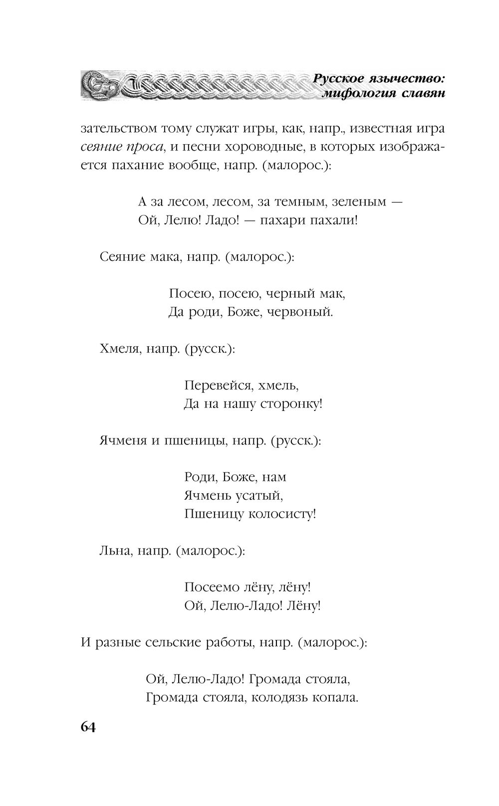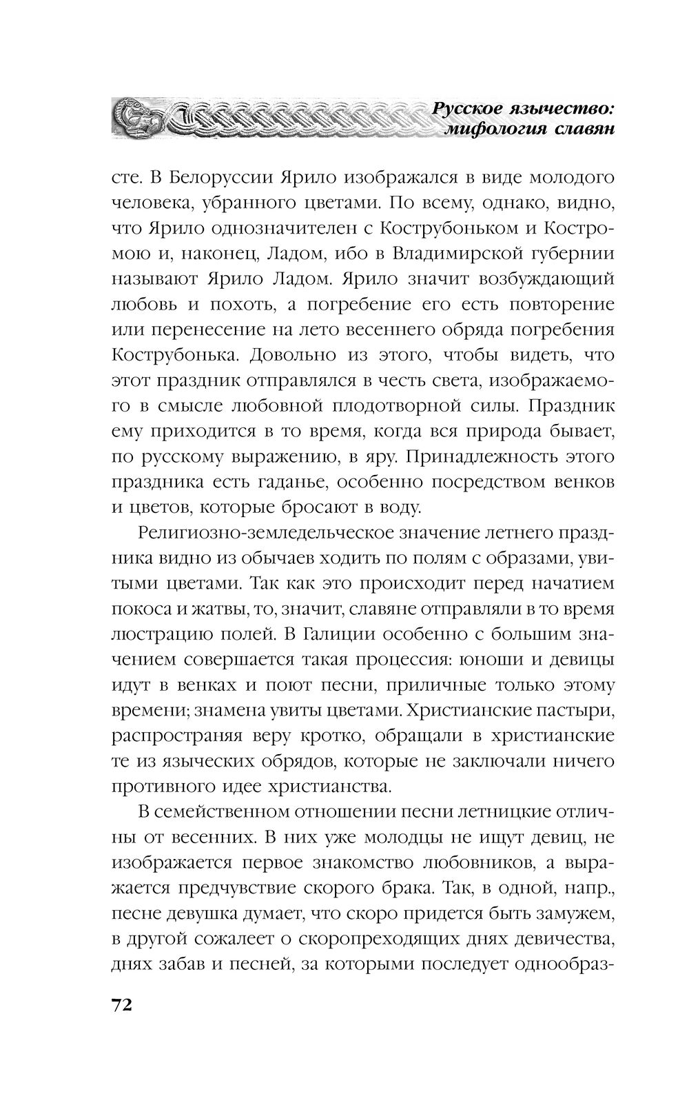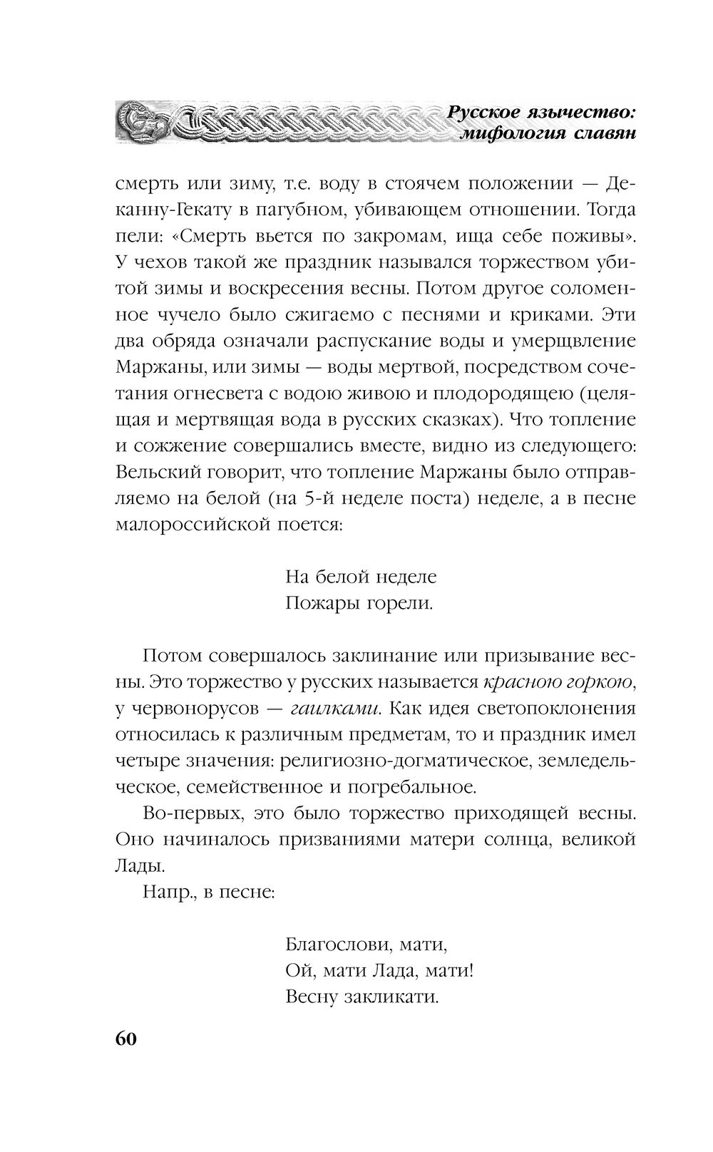 Исчерпывающие сведения о русском язычестве, языческих обрядах и праздниках, богатейшее народное поэтическое творчество, сотни приведенных в книге праздничных, семейных, любовных, свадебных песен делают ее также энциклопедией истории, нравов, быта и всей духовной жизни древних славян.