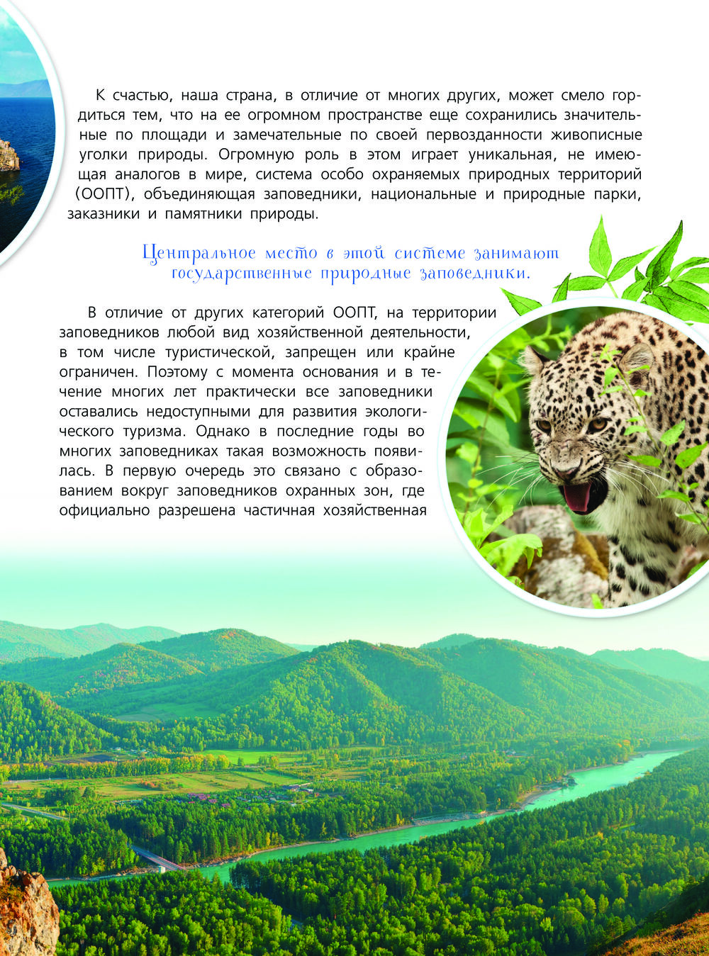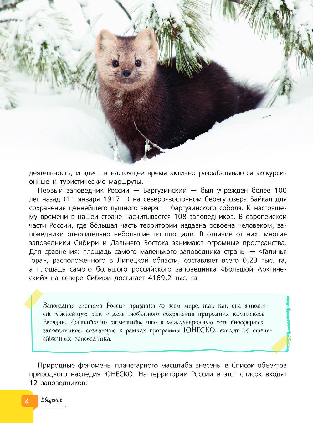 Книга посвящена заповедникам, которые сохраняют и изучают дикую природу России, уникальный мир растений и животных. На территориях заповедников есть места, куда можно приехать на экскурсию, чтобы посмотреть сохранившуюся в первозданной красе природу, редкие виды книжнокнижных животных и растений.