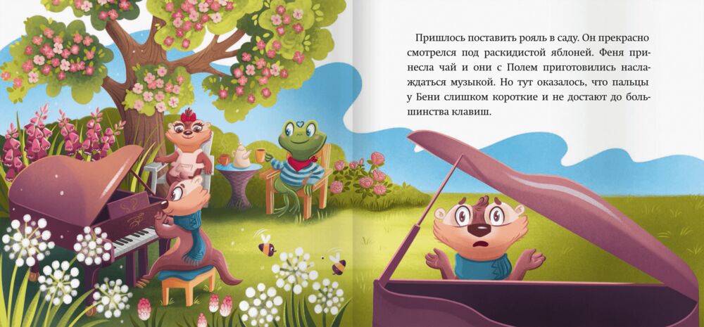 Что нужно, чтобы стать настоящим музыкантом? Конечно же, подходящий инструмент! На его поиски и отправляются наши герои – любознательные выдры Беня и Феня, их друг лягушонок Поль и домашний питомец аксолотль Аксель. Вместе с ними вы узнаете, как звучат разные музыкальные инструменты и что делать, если не всё получается с первого раза.