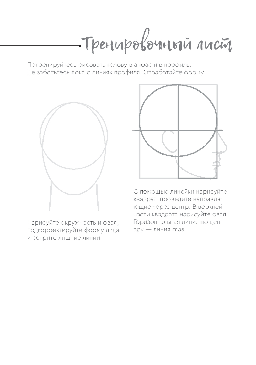 Тренировочные листы помогают закрепить навыки и сильно облегчают вам задачу. Например, для того, чтобы отработать технику рисования носа на лице, вам не нужно рисовать все остальное – тренируйтесь рисовать нос на готовом шаблоне лица!