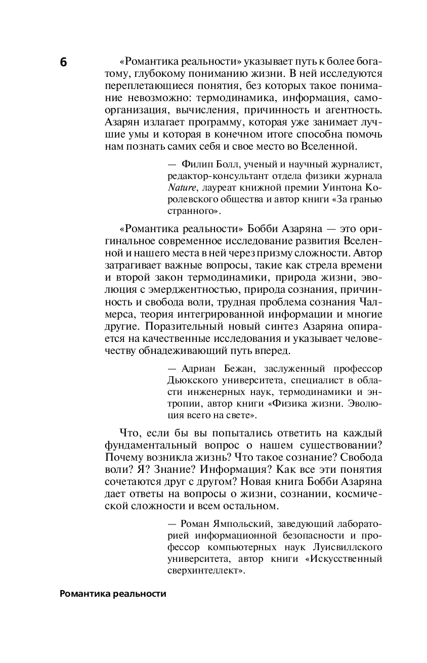 Тысячью различных путей через многообразие наук, концепций и теорий Бобби Азарян показывает нам, как Вселенная самоорганизуется в систему, создает все более сложные структуры – и движется от хаоса к осмысленности.