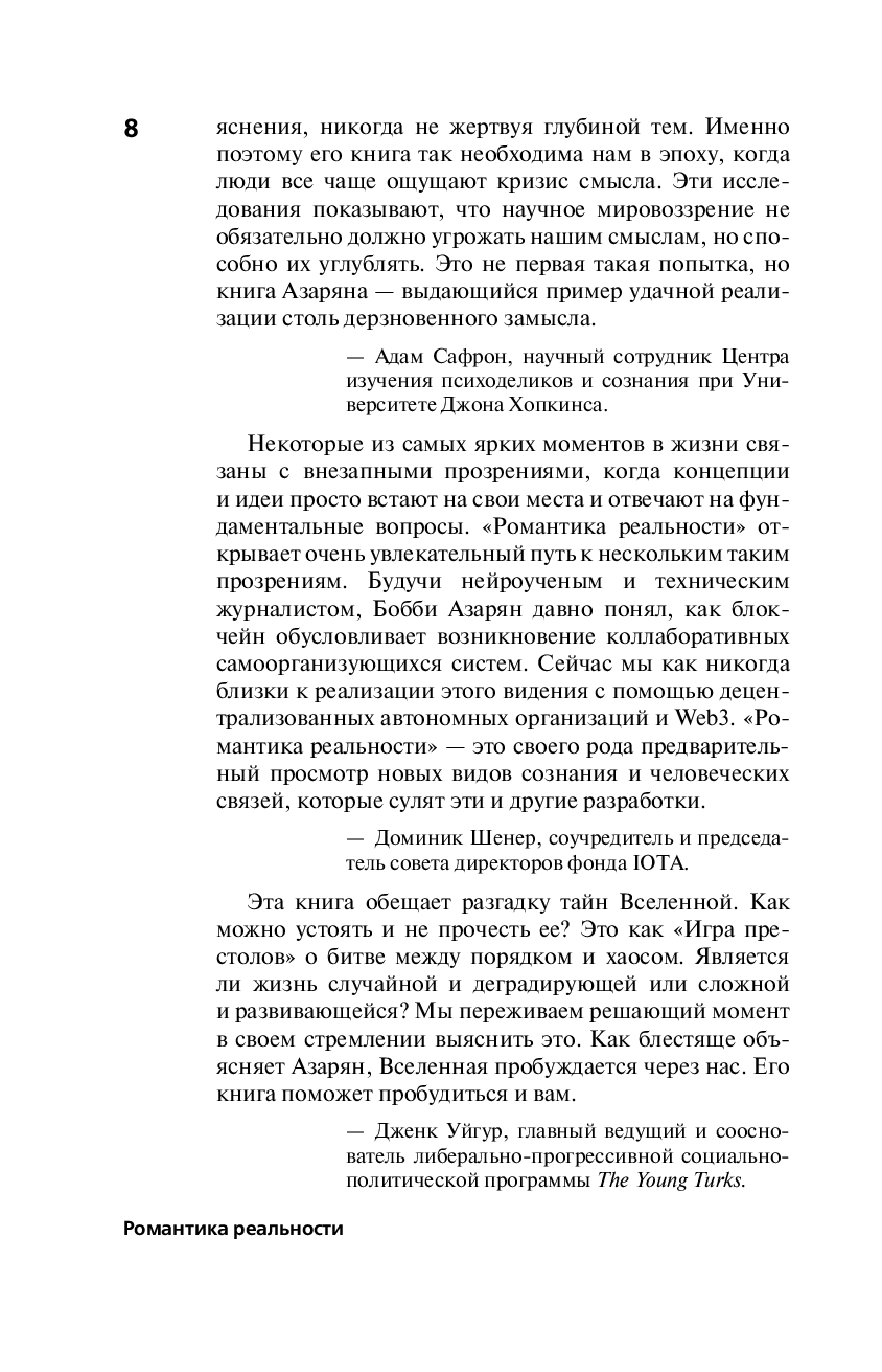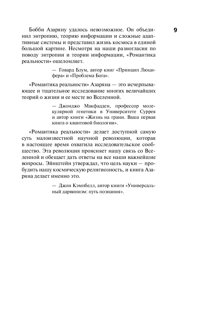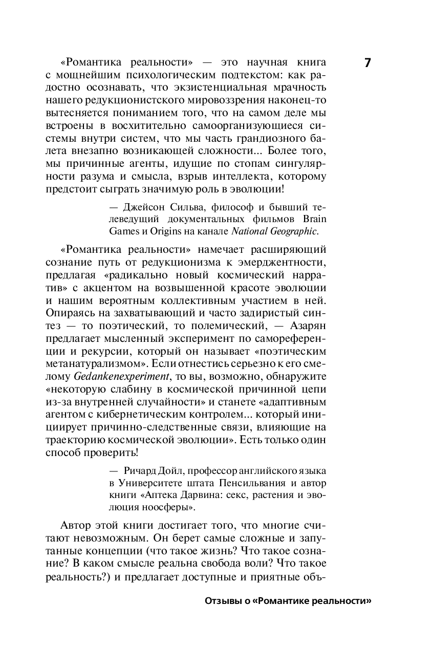 Карл Саган однажды сказал, что "мы – способ космоса познать себя". "Романтика реальности" показывает, что это поэтическое утверждение на самом деле опирается на научную основу и дает нам новый способ познания космоса – и ничего сверхъестественного не требуется.