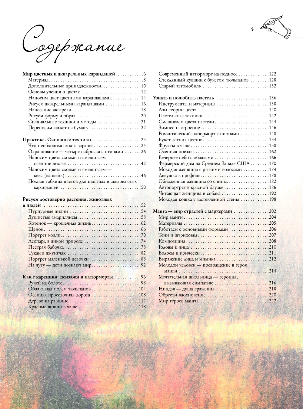 Практические пошаговые уроки помогут отработать основные технические приемы и порадуют широтой охвата тем: от цветов и животных, до сложных пейзажей, натюрмортов, портретов и героев столь популярной сейчас манги.
