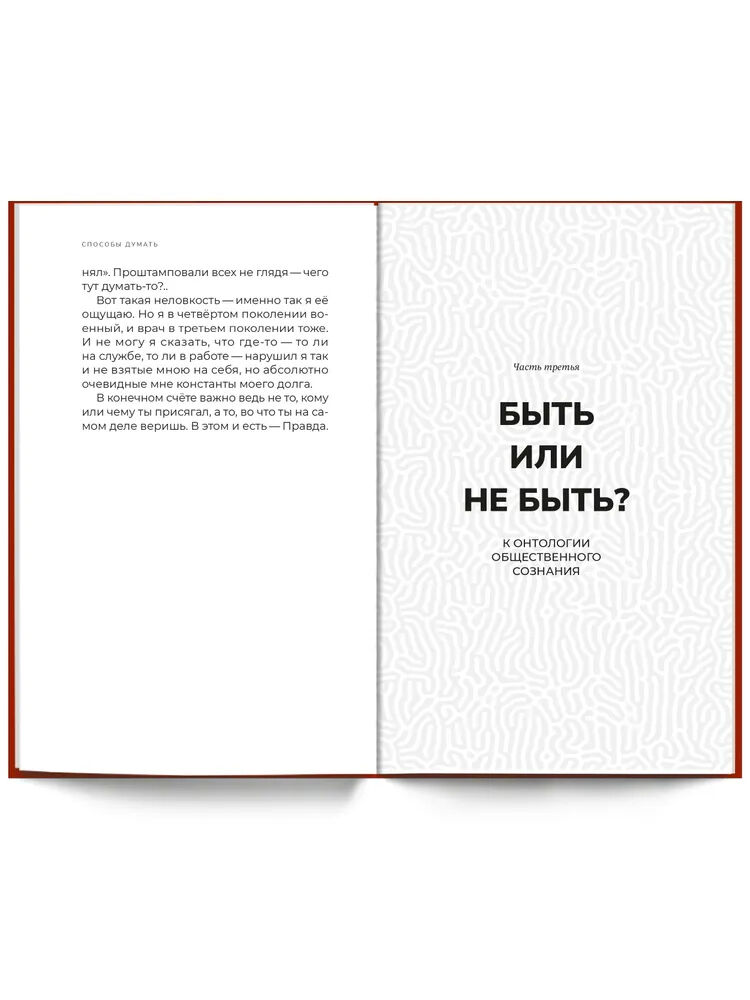 "Способы думать" – книга о том, как создаётся современность. Мы могли бы создать ту её версию, что спасла бы нас от абсурда собственной бесцельности. Впрочем, пока мы тем же способом приумножаем хаос.