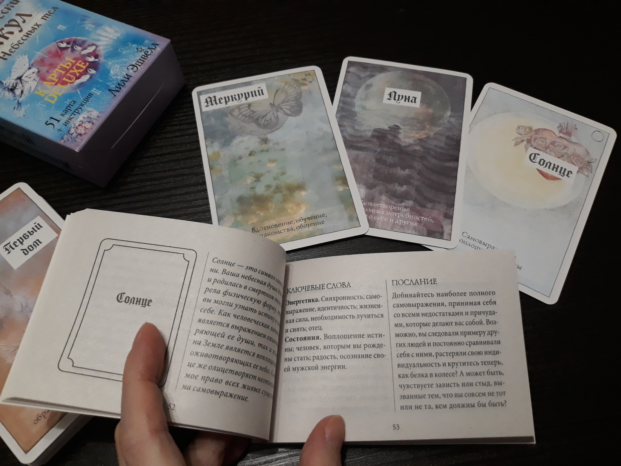 Удобная и понятная инструкция объяснит, как работать с колодой, составлять прогнозы и читать расклады.