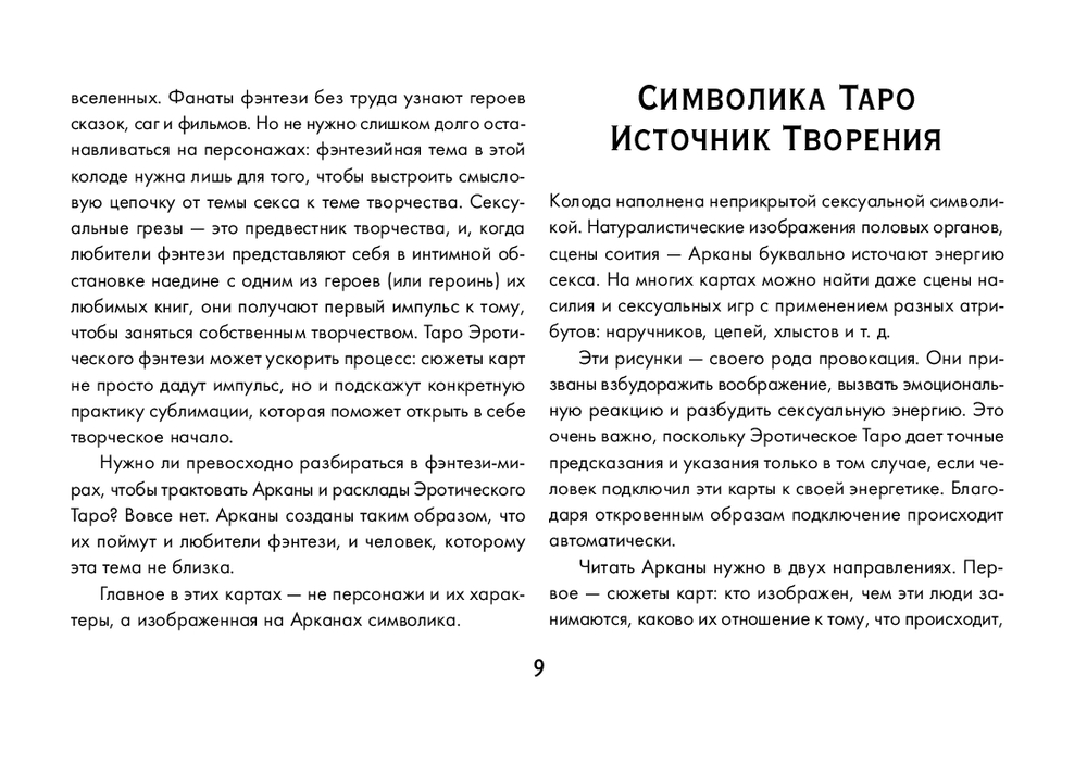 Колода, которую вы держите в руках, – необычна. Ее образы могут вызывать самые разные эмоции: от смущения до шока. Тем не менее эротическая символика использовалась в предсказательных и магических практиках с глубокой древности. В каких-то культах она изображалась более откровенно, в других – была зашифрована в знаки, смысл которых был доступен лишь Посвященным.