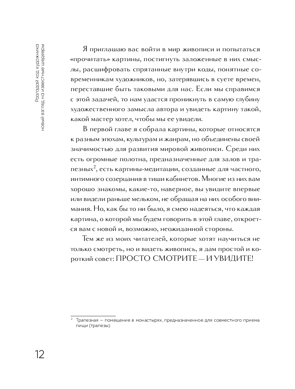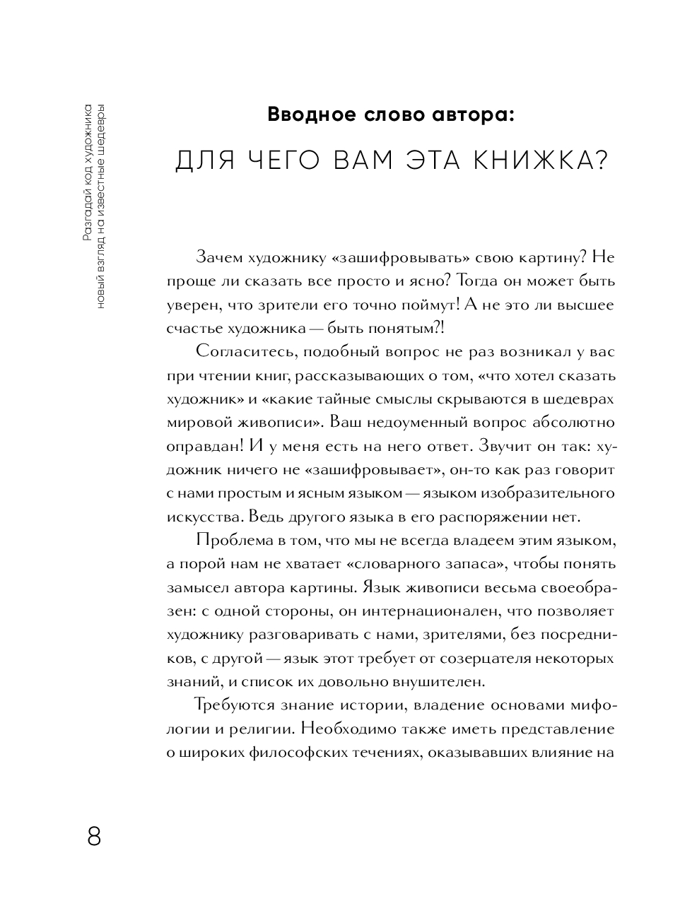 В этом удобном и компактном путеводителе по картинам находятся шифры, которые художники оставили для будущих поколений! Здесь не просто рассуждения автора о главных мировых шедеврах: на страницах вы найдете причинно-следственные связи, сможете погрузиться в исторический контекст и узнать личные истории художников.