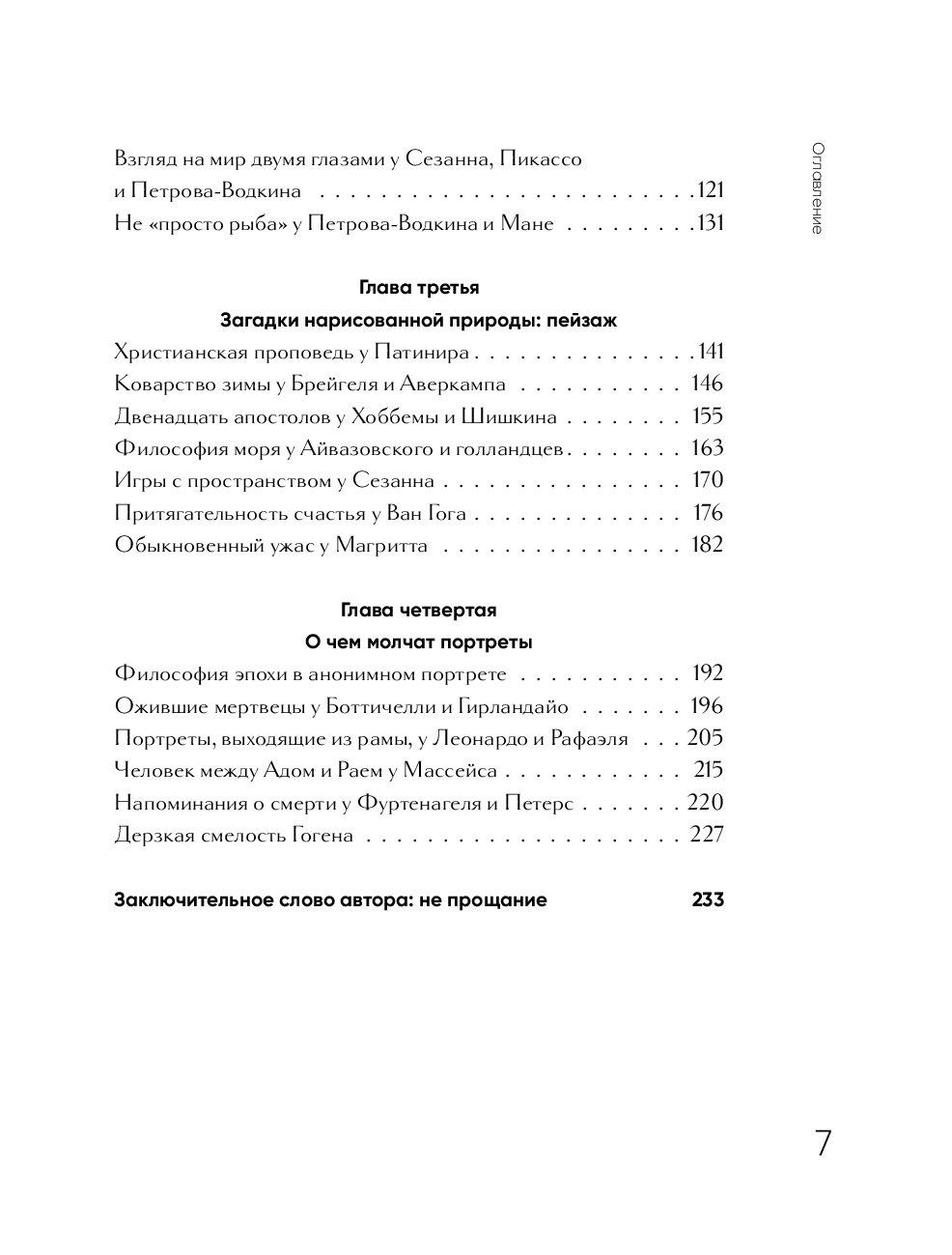 Книга разделена на четыре части: натюрморт, пейзаж, портрет и самые известные шедевры в искусстве, которые ранее не рассматривались с такой таинственной стороны. Благодаря структурированному и лаконичному тексту автор книги – Елена Легран – буквально распутывает клубок из символов, мотивов, смыслов, цветов, которые художники вложили в свои работы. Кроме того, книга станет прекрасным дополнением, если вы уже знакомы с такими изданиями, как "Пойми, почему это шедевр" Франсуазы Барб-Галль, "Главное в истории искусств" Сьюзи Ходж и "Что хотел сказать художник?" Алины Никоновой. Не упустите возможность научиться раскрывать все самое секретное прямо сейчас!