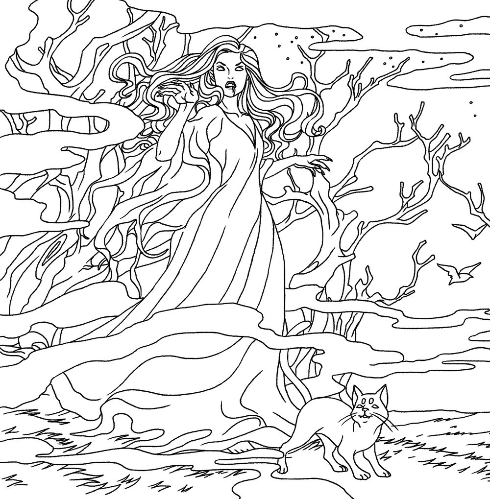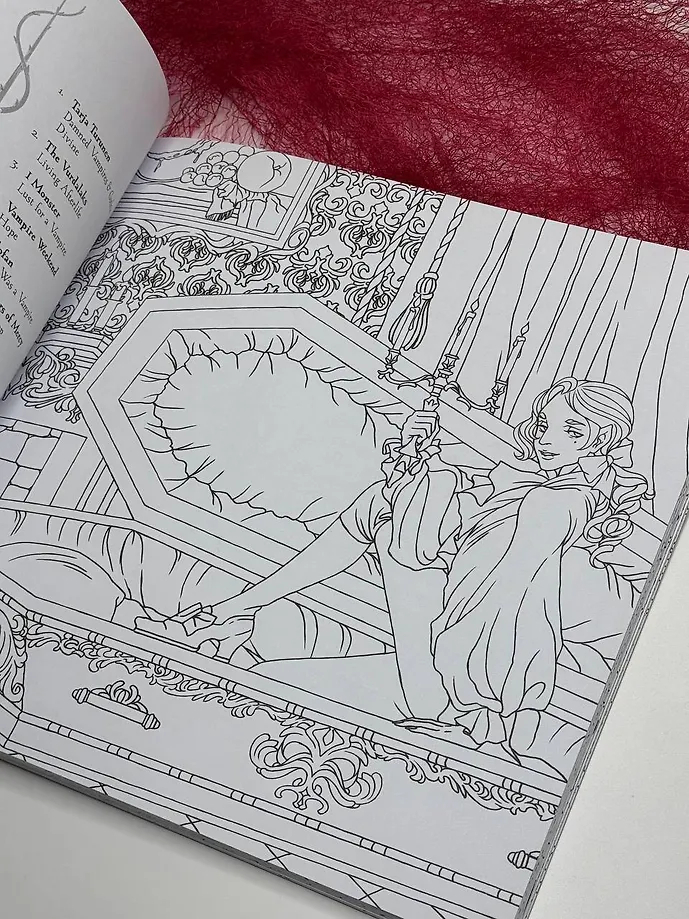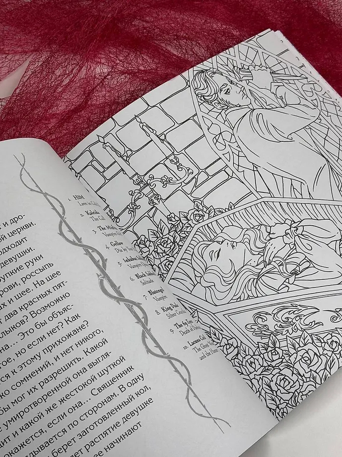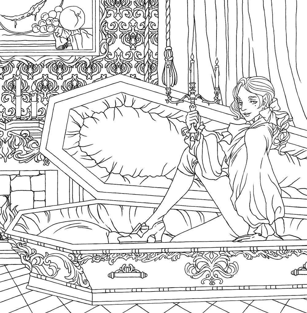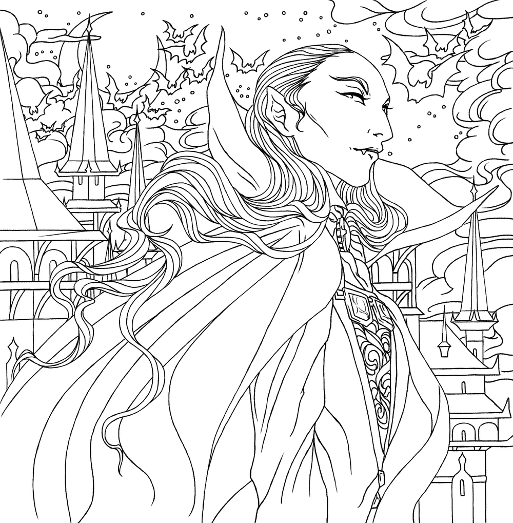 Погрузиться в мрачный мир бессмертных приглашает раскраска, нарисованная художницей Тамарой Герасун. А для создания мрачной атмосферы мы подобрали для вас плейлисты на вампирскую тематику.