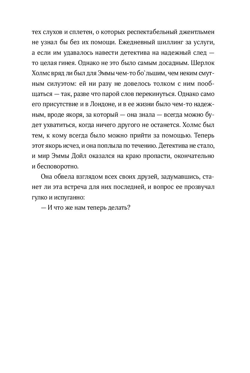 Детективный роман о приключениях пятнадцатилетней Эммы Дойл. После смерти Шерлока Холмса, на которого Эмма работала в группе уличных информаторов, она переезжает в Шанхай вместе со старшей сестрой. Там Эмма обретает настоящих друзей, которые помогают ей раскрыть первое серьезное дело, погружается в культуру новой страны, влюбляется и даже создает собственное бюро расследований.