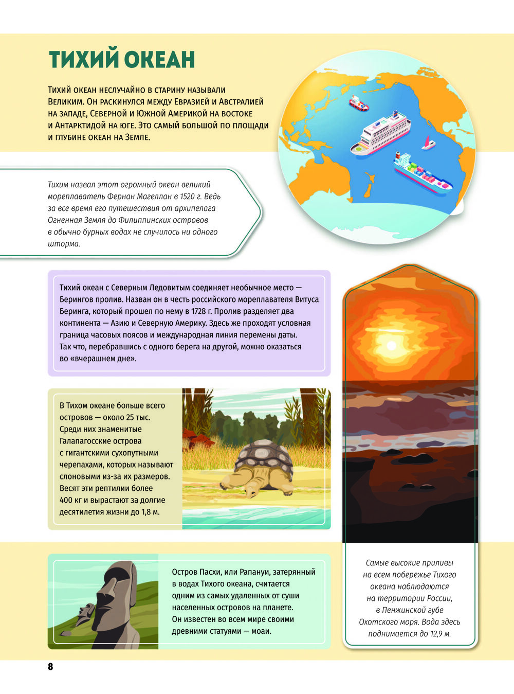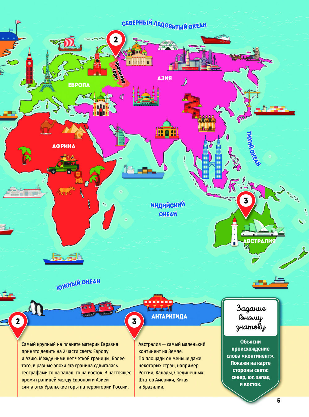 Помимо доступных описаний, прекрасных иллюстраций, познавательных карт и интересных фактов, в книге на каждом развороте имеются самые разные задания для юных знатоков. Ребятам предстоит ответить на вопросы для чего была построена Великая Китайская стена и какая часть Солнца самая горячая, на какие группы делятся все живые организмы планеты, назвать самое большое и самое маленькое государство в мире, рассказать, на какие группы делятся все живые организмы на планете, найти на карте самый большой остров и крупнейшие реки мира, объяснить, почему на полюсах Земли так холодно.