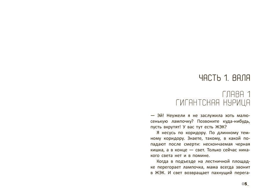 Никто и не догадывается о том, у Вали есть особенные друзья: циничный Едкий, смешливый Хохотун, романтичная Мимиваля, умный Всезнайка, паникёр Что-о-нас-подумают и таинственный Неизвестный-из-слива. Валя слушает то одного, то другого, но только не себя. А тут ещё эта гигантская курица из сна, которая ночь за ночью пытается догнать Валю и проглотить со всеми потрохами...