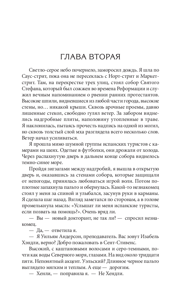 Когда аспирантка Изабель приезжает на учебу в университет Шотландии – в тихий городок с флером Средневековья, то с удивлением узнает, что ее научная руководительница погибла при странных обстоятельствах. А вскоре исчезает ее подруга по учебе Роза.